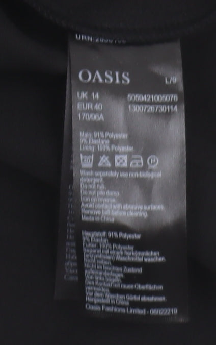 Step into elegance with this timeless black dress from Oasis, crafted for women who appreciate understated style. This dress is made from 91% polyester and 9% elastane, providing a comfortable fit with just the right amount of stretch. Designed in a classic V-neckline, it is perfect for both formal and casual occasions. The dress falls at a flattering length, ideal for daytime events or an evening out, and is accentuated by a chic belt detail that cinches the waist elegantly to enhance your silhouette. The short sleeves add to the versatile design, making it suitable for various seasons and settings. Pair with your favourite accessories to create different looks effortlessly. Excellent condition ensures you’re getting a high-quality piece that’s ready to wear. Discover this meticulously crafted dress and add a staple piece to your wardrobe today.