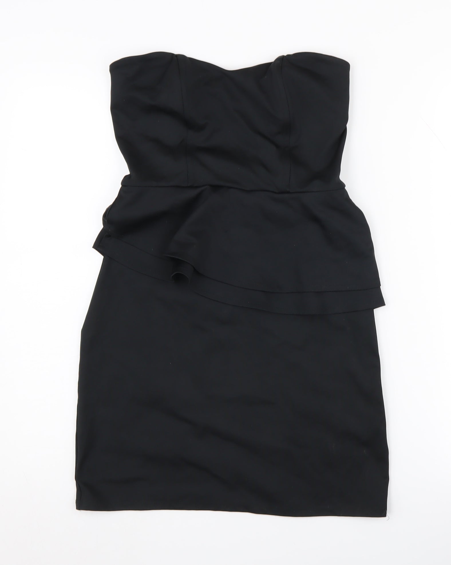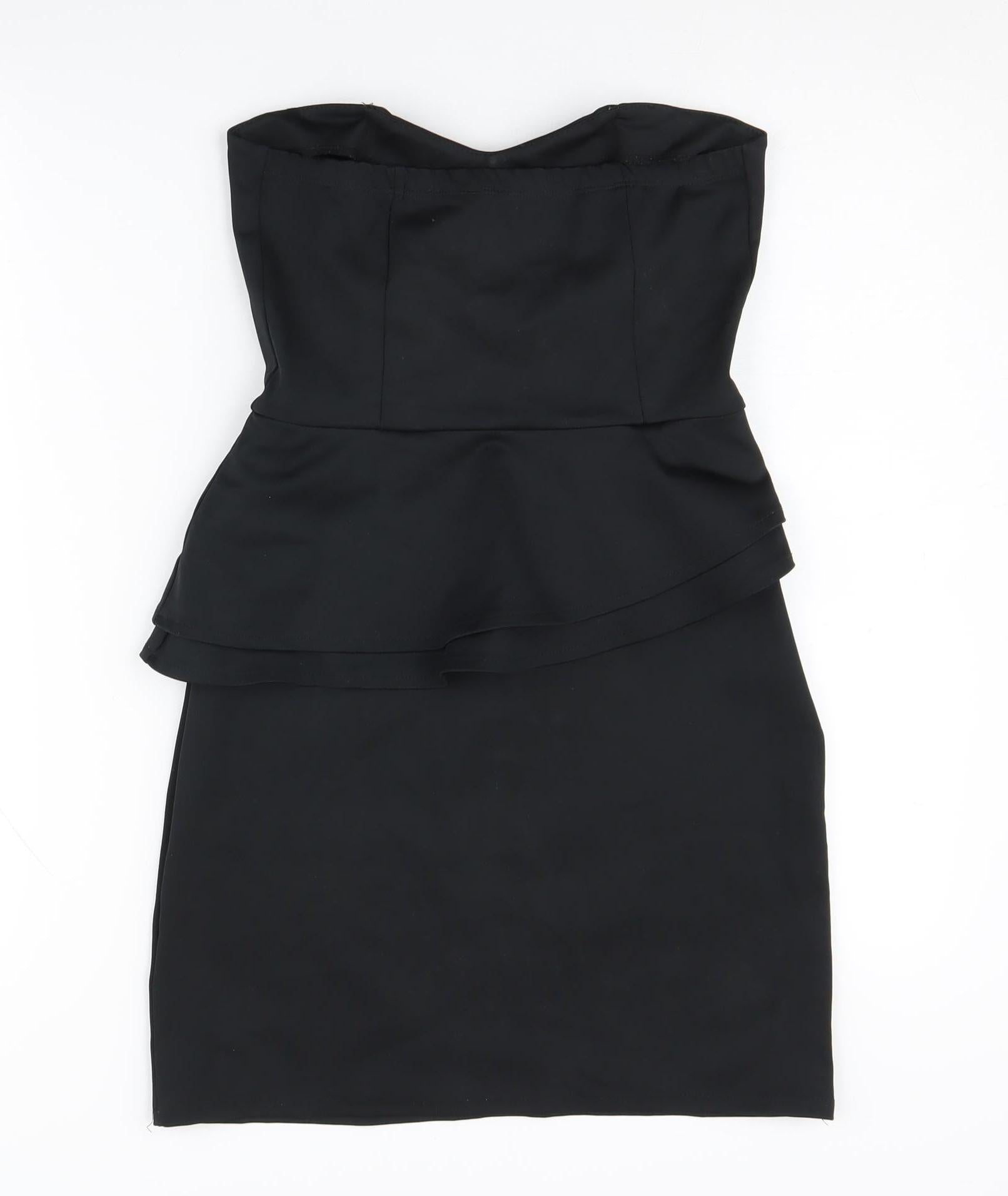 Elevate your wardrobe with this chic black strapless dress by Oasis, tailored for sophisticated party attire. Designed with a sleek sweetheart neckline and alluring peplum detail, this short dress is the ultimate choice for any cocktail occasion. Constructed from a fine material, it ensures a flattering silhouette that hugs your contours. The elegant strapless design highlights your shoulders and neckline, making it a timeless piece for autumn events. A perfect blend of comfort and style, this dress is a staple for those who crave a minimalist yet striking fashion statement. Complement it with your favourite heels and let your evening unfold with confidence and grace.