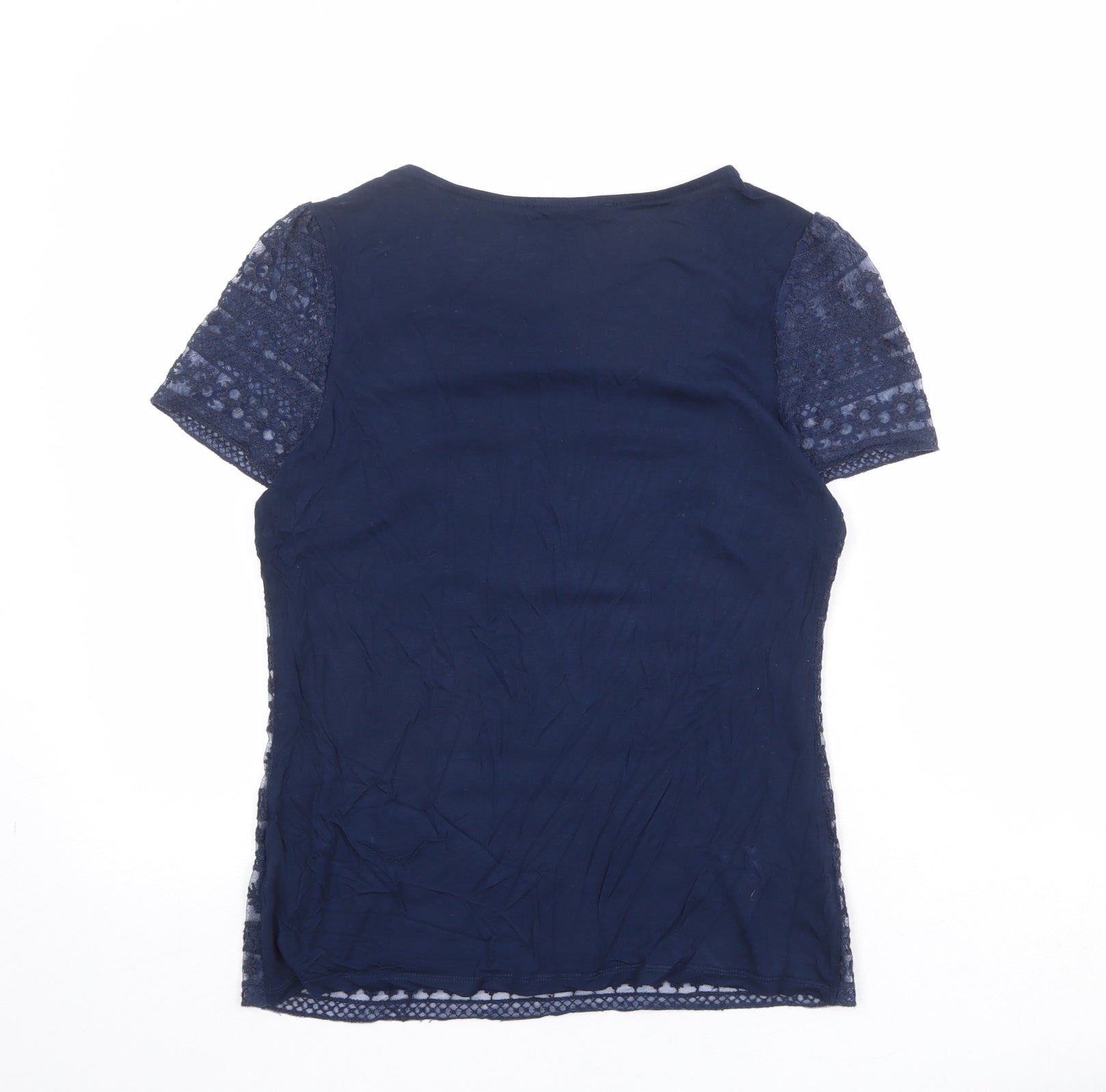 Womens Blue Cotton Basic T-Shirt Size S Round Neck