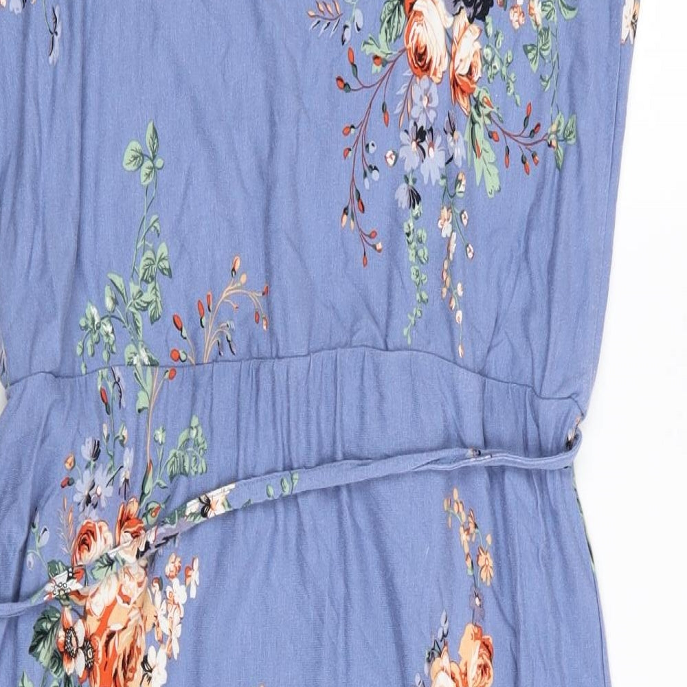 Chip Clip Womens Blue Floral Polyester Fit & Flare Size L Round Neck Pullover