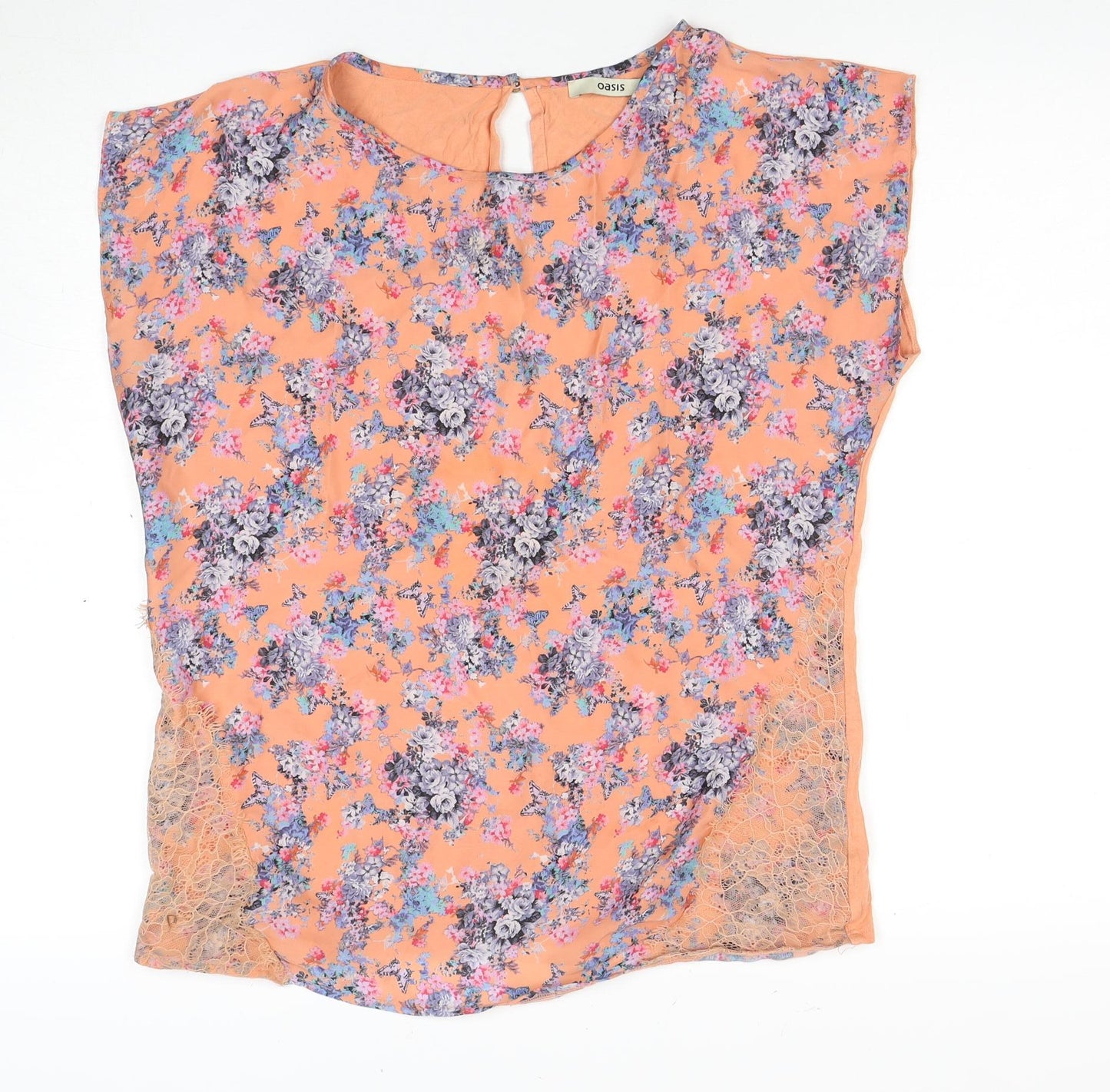Elevate your wardrobe with this charming Oasis women's floral blouse, perfect for sunny spring and summer days. Featuring a delightful blend of vibrant colours, this multicoloured piece stands out with a chic floral pattern that's sure to turn heads. Designed in a size medium, this sleeveless blouse ensures comfort and ease, making it a must-have for your casual closet. Constructed with lightweight chiffon, it provides a soft and airy feel, perfect for all-day wear. With a simple round neckline and cap sleeves, the blouse offers a relaxed fit, making it an effortless choice for various occasions. Its regular fit flatters most body types, ensuring you look your best no matter the setting. The versatile design is perfect for casual outings, yet stylish enough to transition into more formal settings. The blouse's button closure at the back reinforces its easygoing yet stylish appeal. Comprising 100% polyester and 100% viscose materials, this blouse requires machine washing, ensuring low maintenance and easy care. Despite being lightly worn, the condition remains excellent, guaranteeing you more wear to come. Pair it with your favourite jeans or skirts for an effortlessly chic look. Opt for this Oasis blouse to add a touch of floral elegance to your everyday style.