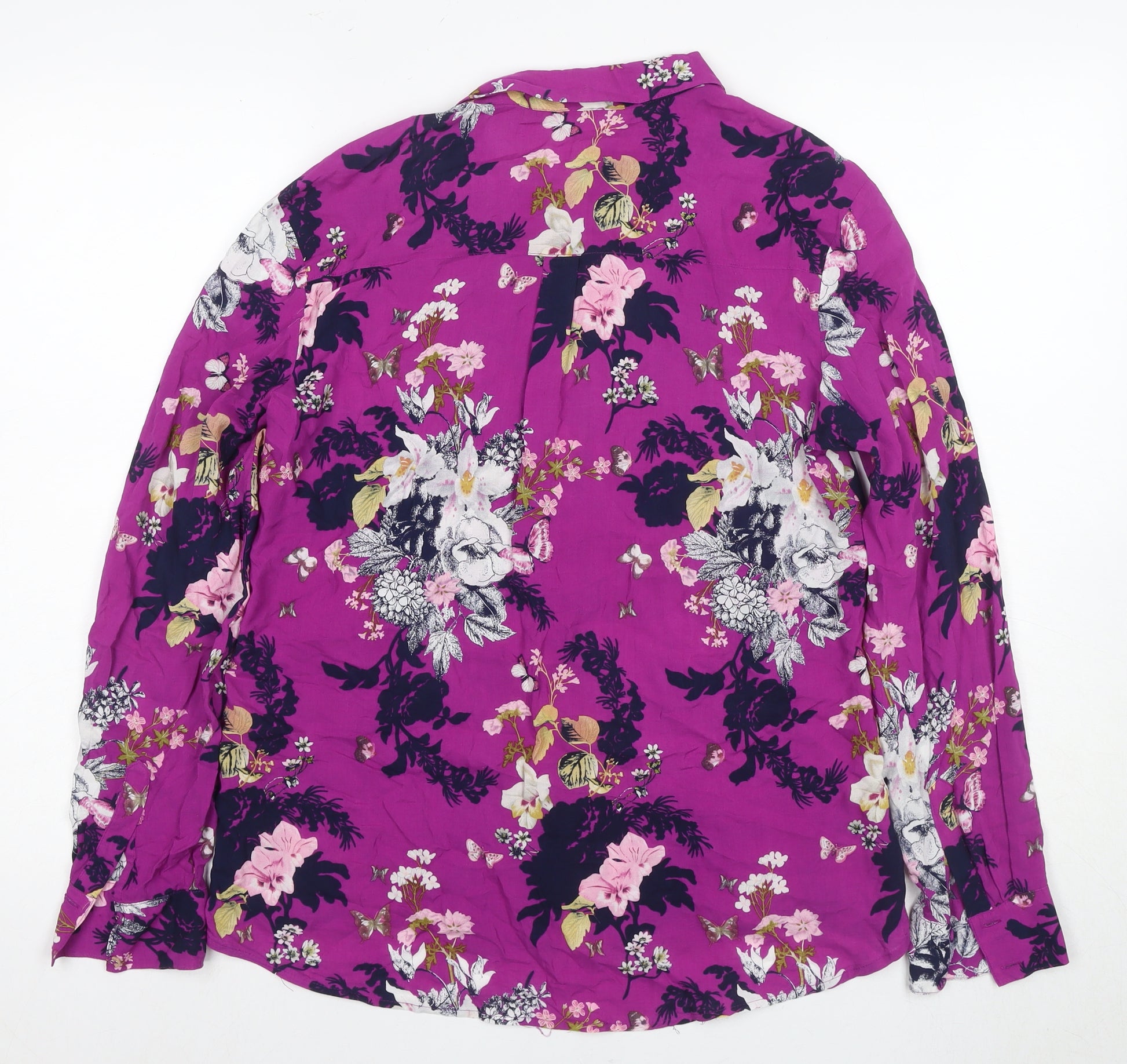 Elevate your wardrobe with this vibrant floral blouse from Oasis, perfectly designed for the fashion-forward woman. Exuding elegance and charm, this multicoloured tunic-style top is tailored from 100% viscose, offering a luxurious feel and a flattering drape. Ideal for the spring and summer seasons, this blouse features long, fitted sleeves and a classic collared neckline, making it a versatile piece for casual occasions.Adorned with a beautiful and intricate floral pattern, this blouse ensures you stand out wherever you go. The full button closure adds a touch of sophistication, allowing for easy wear. Its classic fit is complemented by the regular size type, ensuring comfort and style for everyday outings or casual gatherings.Machine washable for easy care, this blouse promises hassle-free maintenance and durability. Despite its excellent condition, it reflects no signs of wear, making it an ideal choice for those seeking high-quality, pre-loved fashion.Whether paired with tailored trousers for a smart-casual look or with jeans for a laid-back vibe, this women's blouse from Oasis is a fantastic addition to any wardrobe. Don't miss the chance to own this versatile piece that beautifully combines style and practicality.