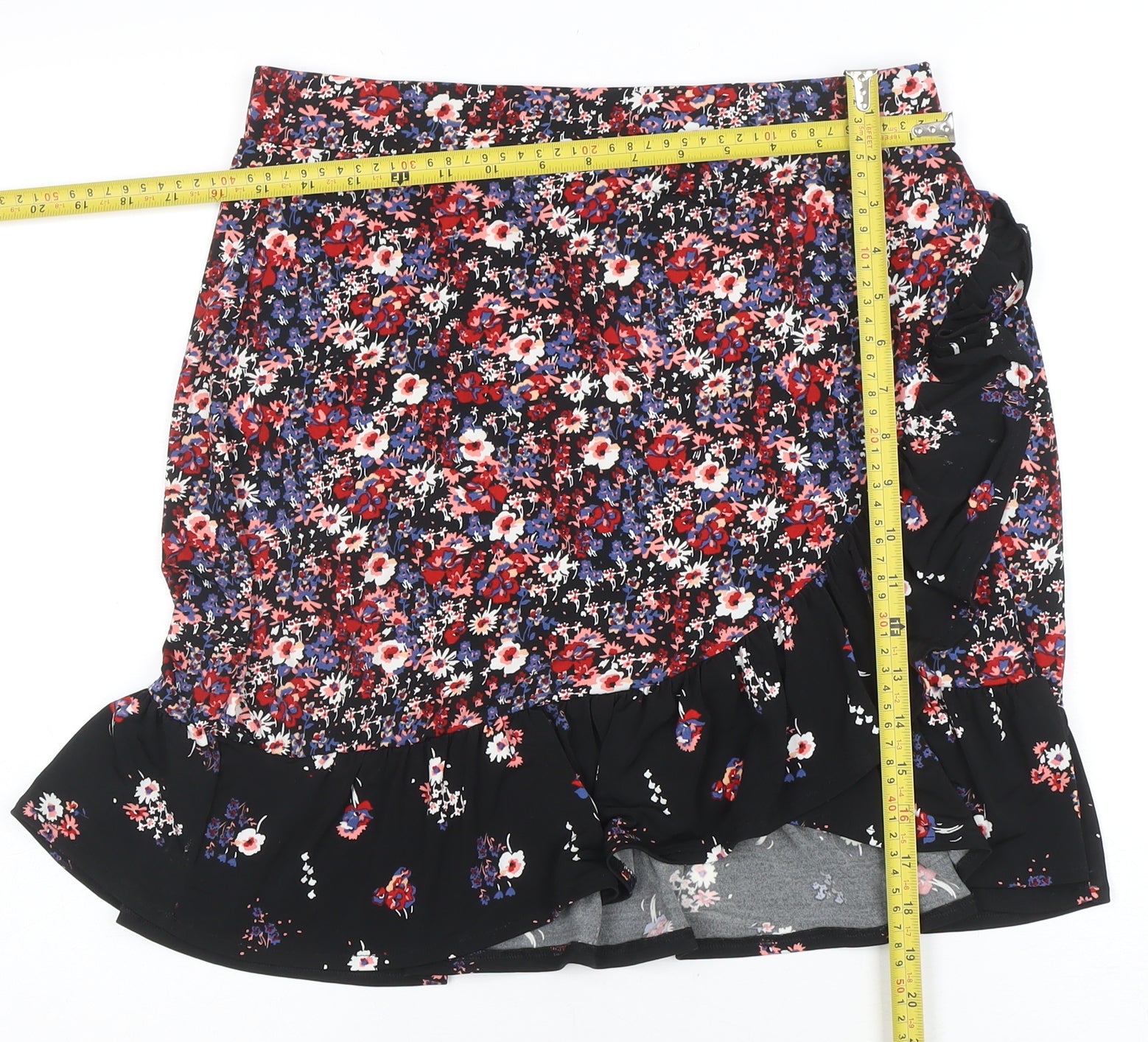 Timezone Womens Multicoloured Floral Short Wrap Cotton Skirt Size S