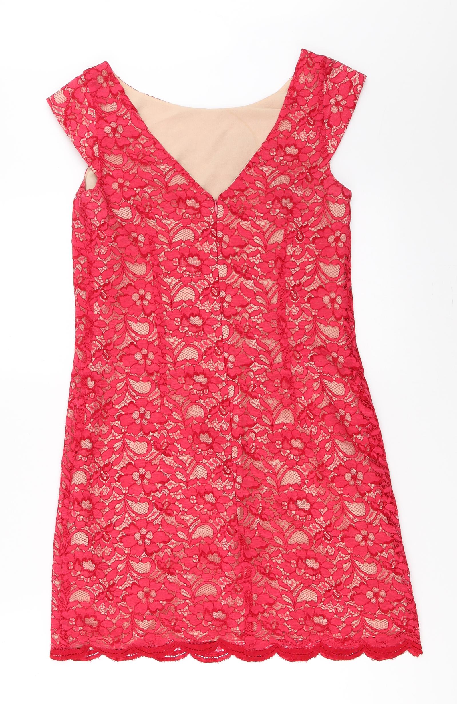 PRETTYLITTLETHING Womens Pink Geometric Polyester Bodycon Size 8 V-Neck Zip