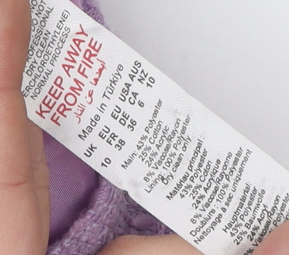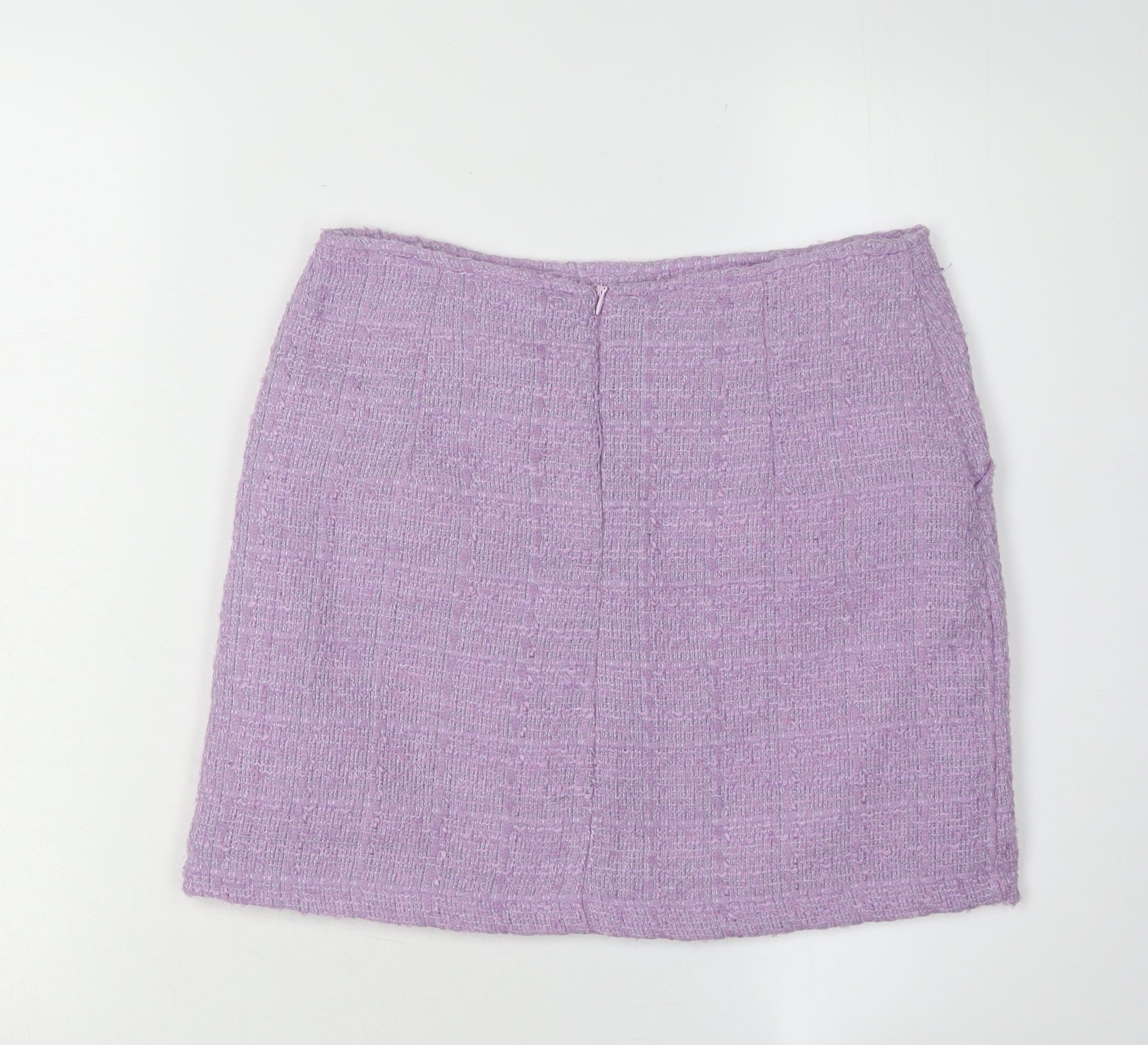 Step into sophistication with this exquisite Oasis Women's Purple Short Pencil Skirt. Perfectly tailored for a flattering fit, this skirt is crafted from a quality blend of materials, including a soft mix of polyester, cotton, and acrylic in a charming tweed fabric. Its striking purple hue brings a pop of color to your wardrobe, while the button accents add a refined touch. Designed for everyday luxury, this skirt features a practical mid-rise fit, making it ideal for casual outings or a day at the office. The contemporary straight and pencil style reflects timeless elegance, while the all-season blend ensures comfort throughout the year. Finished with a secure zip closure, maintaining both style and convenience. In excellent condition, this skirt shows minimal signs of previous wear, exclusively handled with care, and is best paired with dry clean maintenance. Whether paired with a blouse or a casual tee, this versatile piece stands out in any collection, offering chic style wherever you go.