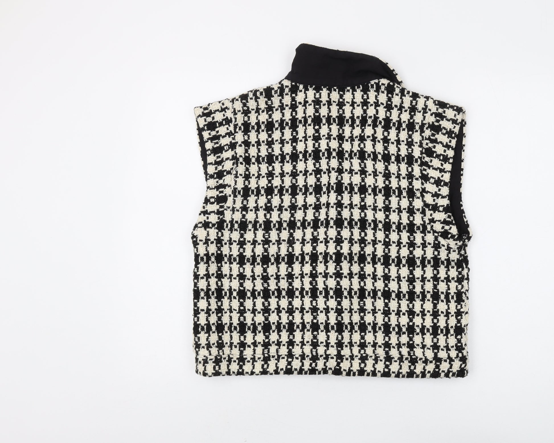 Elevate your style with this charming waistcoat from Object, designed for women seeking a fashionable layer to complement their attire. This chic piece features a classic black and white check pattern which ensures versatility across seasons and occasion settings. The waistcoat is crafted from high-quality polyester for a sleek and comfortable fit that will maintain its shape throughout wear. Designed in a size 8, it is ideal for regular fit and allows for effortless layering over both casual and business attires. The sleeveless design offers ease and flexibility, while the button closure adds a refined touch to the garment's overall aesthetic. Suitable for a variety of occasions, its classic pattern and neutral colours blend seamlessly with items from your existing wardrobe, encouraging you to create endlessly unique, modern looks. The waistcoat promises style and comfort, paired with easy care, being machine washable for your convenience. Whether you're dressing up for a special event or seeking a smart casual layering piece for workwear, this waistcoat can adapt to your needs while maintaining an air of timeless sophistication.While gently pre-owned, it remains in excellent condition, exhibiting no visible wear, and ensures durability and lasting beauty. Opt for this Object Check Waistcoat to enrich your wardrobe with a fashionable and functional piece that is sure to attract admiring glances.