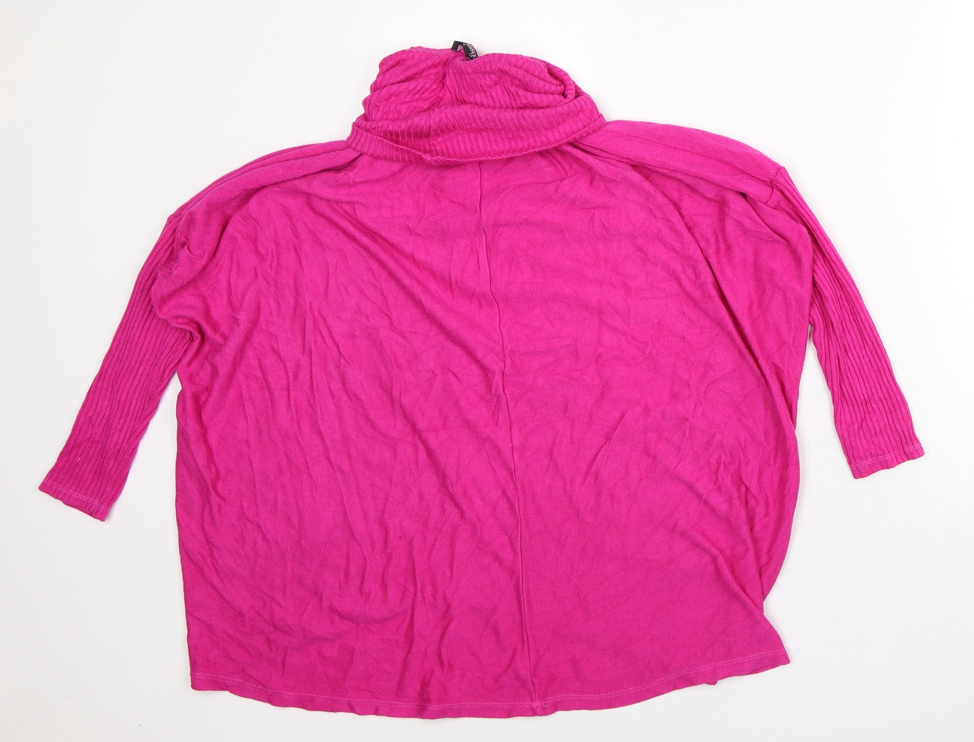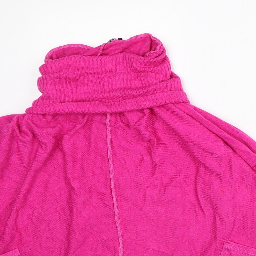 Womens Pink Nylon Tunic T-Shirt Size M Roll Neck