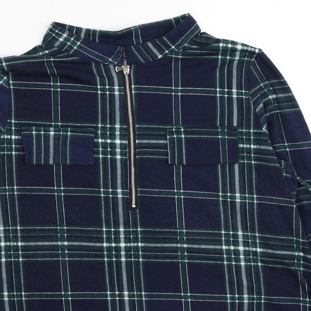 Womens Blue Plaid Cotton Tunic Blouse Size M Collared