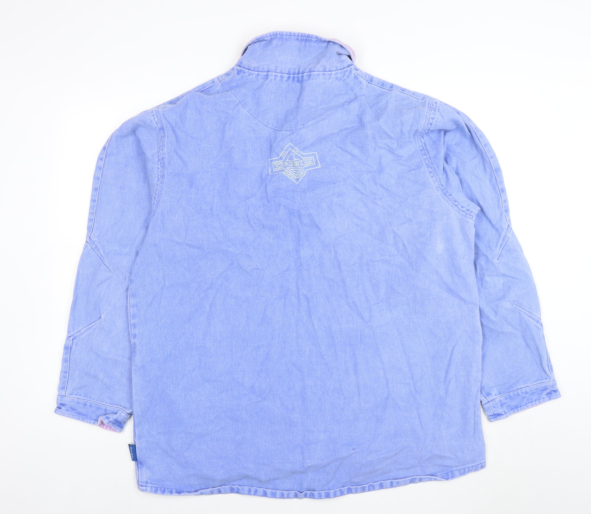 Embrace laid-back, casual style with this Off The Beaten Track women’s pullover sweatshirt, finished in a soft denim-like blue tone with a contrasting inner collar in lilac pink. Designed in a comfortable relaxed fit, the lightweight cotton fabric offers excellent breathability while ensuring a cosy, lived-in feel ideal for all-season wear. The 1/2 zip front makes this piece easy to slip on and off, while giving you flexibility to wear it zipped up for warmth or open for a more relaxed look. The collar detail adds a touch of charm and a subtle sporty aesthetic, whereas the brand patch on the hem provides authenticity and a vintage-inspired detail that distinguishes the piece. Perfect for casual days out, walks or layering over leggings and jeans, this sweatshirt offers both practicality and style. The long sleeves and sturdy stitching provide durability, making it an everyday staple for your wardrobe. Its relaxed, slightly oversized cut ensures easy movement and comfort whether you’re lounging or exploring the outdoors. Despite being pre-loved, this sweatshirt remains in excellent condition with only light surface creasing from storage – ready to be worn again. Pair it with your favourite trainers and denim for an off-duty look that’s effortlessly cool. The calm blue tone complements a range of outfits, while the simple, functional design embodies everyday versatility. Whether you’re heading for a walk, running errands or enjoying a cosy afternoon indoors, this sweatshirt blends comfort, quality and easy style in one. A timeless, practical wardrobe addition that captures casual fashion with a hint of nostalgia.