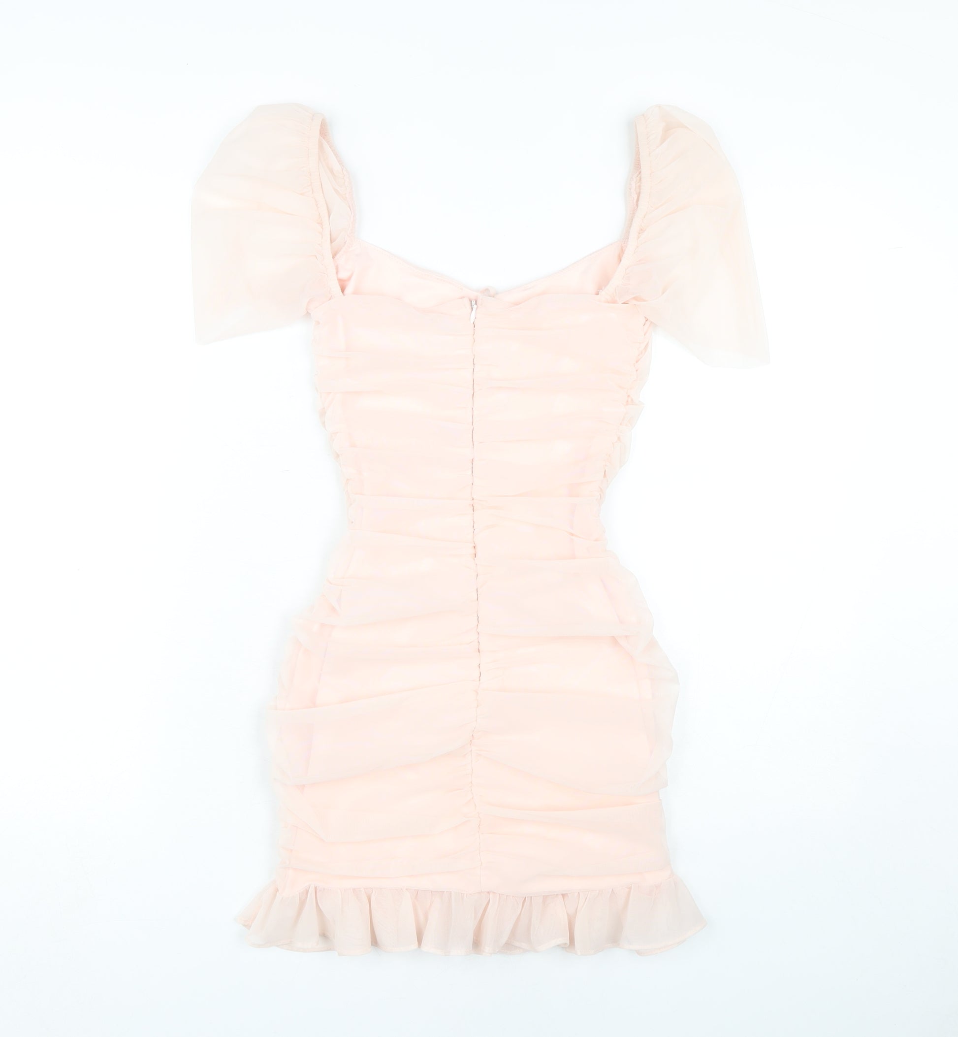 Introducing a stunning addition to your wardrobe, the Oh Polly Women's Pink Bodycon Mini Dress in size 8. This beautiful piece is designed to accentuate your curves while maintaining a classic and elegant look. The soft pink colour adds a feminine touch, making it perfect for spring and summer occasions. Crafted from high-quality materials, this dress features an exquisite blend of 89% polyester and 11% elastane, ensuring a comfortable and flexible fit. The sweetheart neckline and puff sleeves add a playful yet sophisticated element, while the ruched detailing enhances its body-hugging silhouette. The zip closure at the back ensures easy wear and a secure fit. This mini dress is an ideal choice for party or cocktail events, offering a timeless look with modern flair. Pair it with your favourite heels and statement accessories for a complete ensemble. Whether attending a special occasion or simply enjoying a night out, this dress promises to turn heads and make you feel fabulous.
