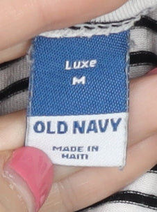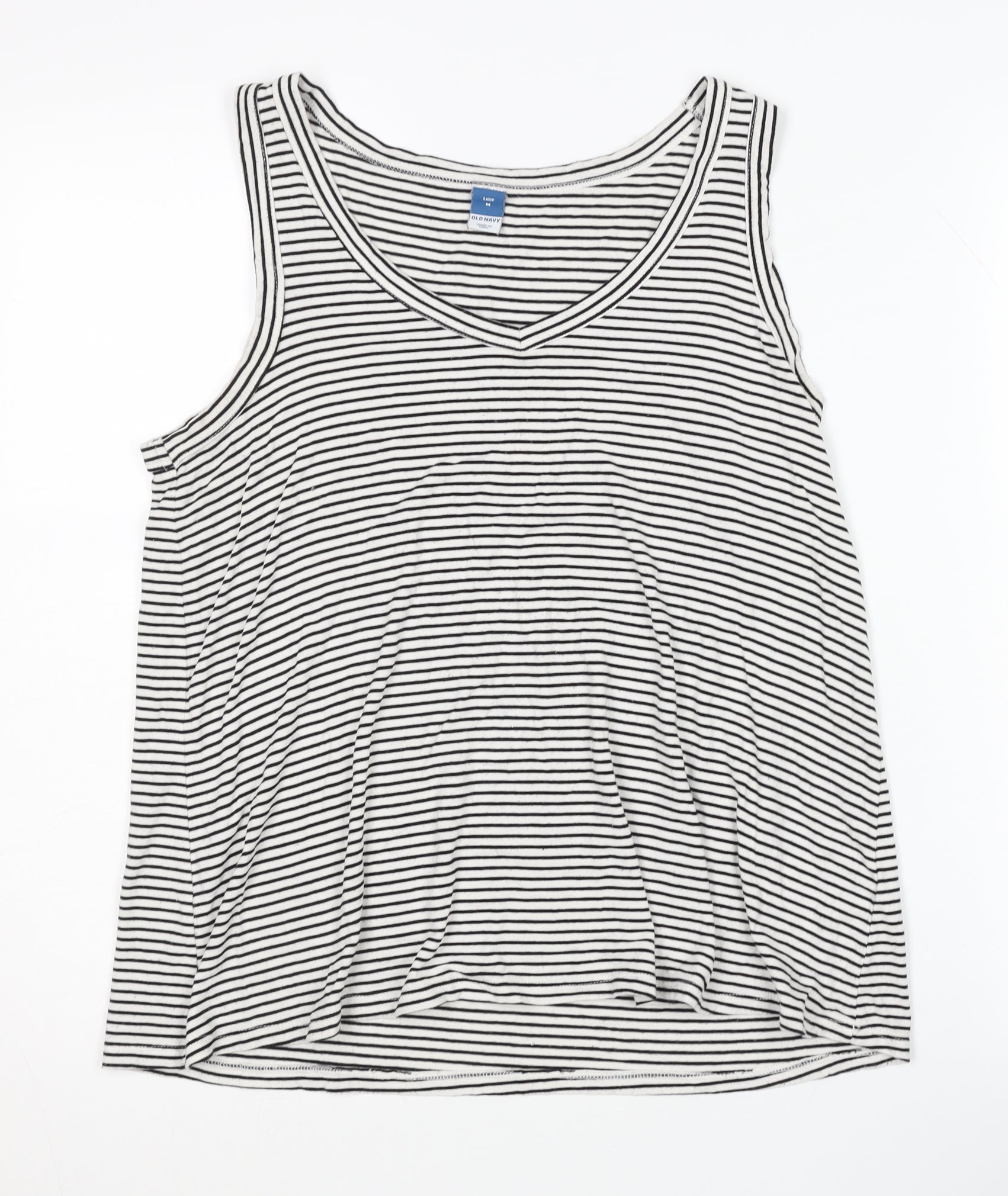 Elevate your casual wardrobe with this stylish and comfortable black and white striped tank top by Old Navy. Perfect for warm summer days, this sleeveless top features a classic V-neck design that adds a touch of flair to your everyday look. Made from a soft blend of 95% viscose and 5% elastane, it offers a lightweight and breathable fit, ensuring comfort throughout the day. This regular-sized tank is ideal for women seeking a versatile addition to their collection, suitable for both relaxed outings and casual occasions. The pullover style makes it easy to wear, while the striped pattern brings a timeless appeal that pairs well with jeans, shorts, or skirts. Machine washable and easy to care for, this tank is a practical and fashionable choice for your summer wardrobe. Despite slight wear, the item remains in excellent condition without original sales tags. Grab this must-have piece for just £12.00, offering a perfect blend of style, comfort, and value.