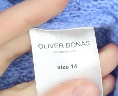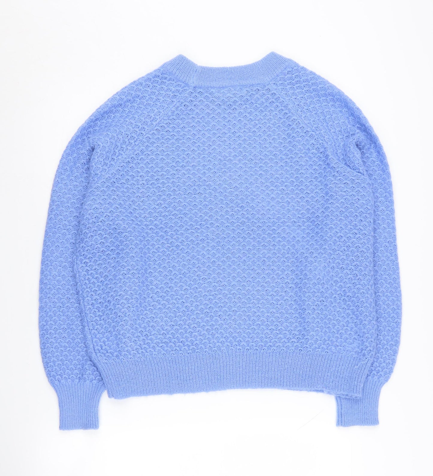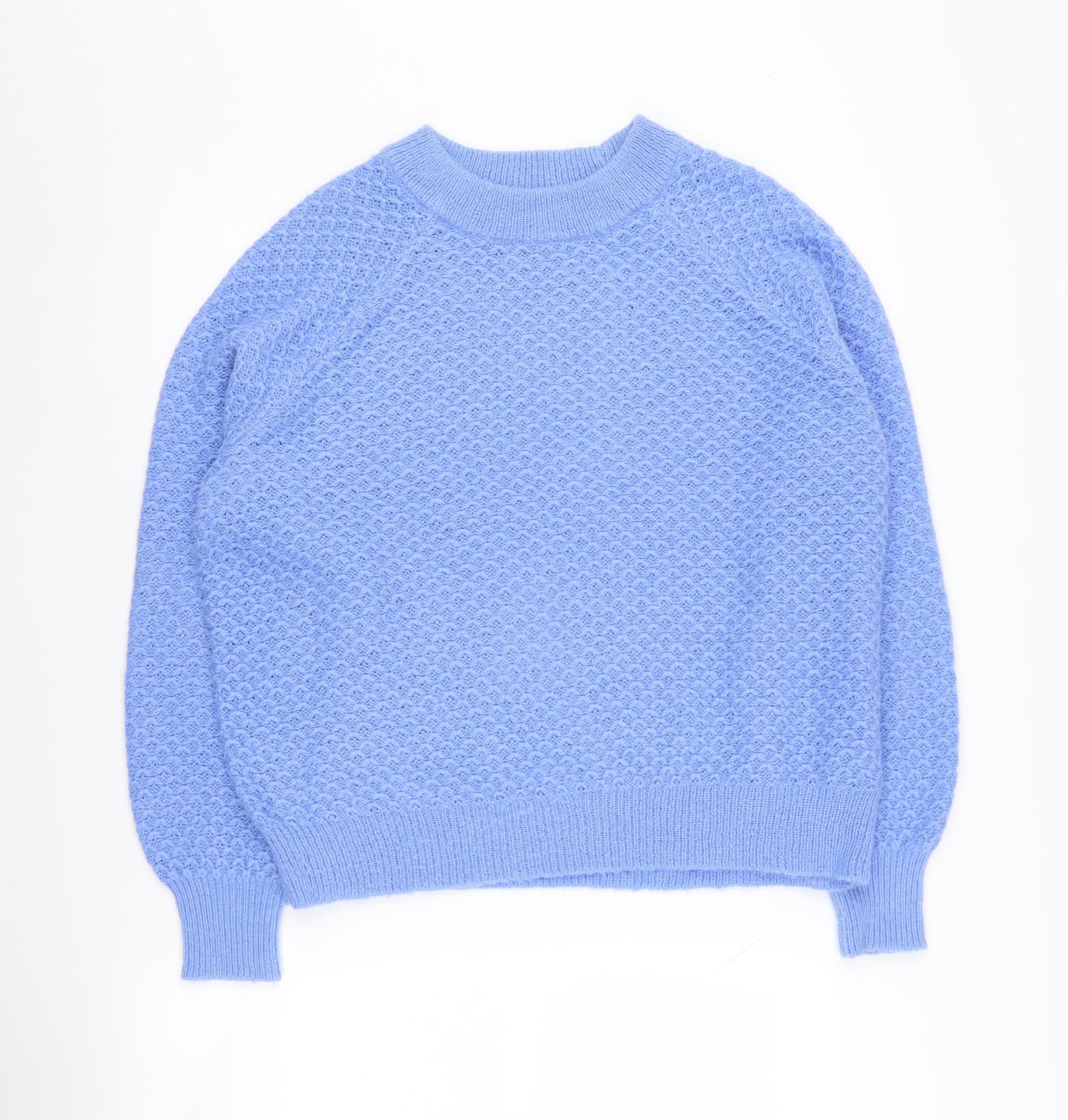 Discover elegance and comfort with this Oliver Bonas blue waffle-knit pullover jumper, perfect for any wardrobe. This women's jumper, sized at 14, combines style and ease, making it ideal for casual outings or cozy evenings. Beautifully crafted from a luxurious blend of materials, including polyamide, acrylic, mohair, and wool, it ensures breathability and warmth for autumn and winter seasons. Featuring a classic crew neck and raglan sleeves, this knit jumper offers a regular fit that hugs just right without being restrictive. The soft knit fabric adds to the charm, providing a gentle feel against the skin while maintaining a stylish, textured look. The light blue hue adds a splash of colour to your outfit, making it versatile to pair with a variety of other clothing. Whether you're dressing up for a casual day out or lounging at home, this jumper has got you covered. Machine washable and designed for ease of care, it's practical as well as stylish. Enjoy the gentle warmth and timeless appeal this jumper brings, representing Oliver Bonas's dedication to quality and style. Get ready to embrace any occasion effortlessly with this chic, cozy addition to your wardrobe.