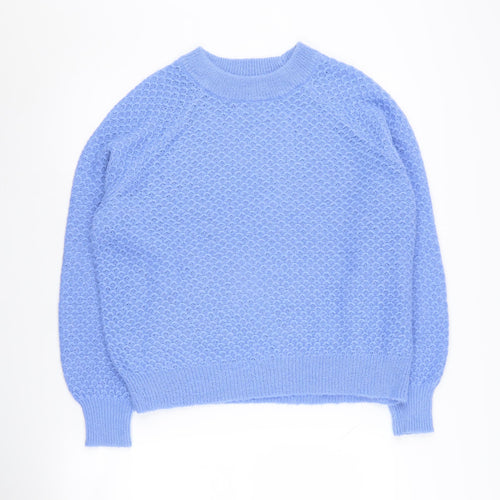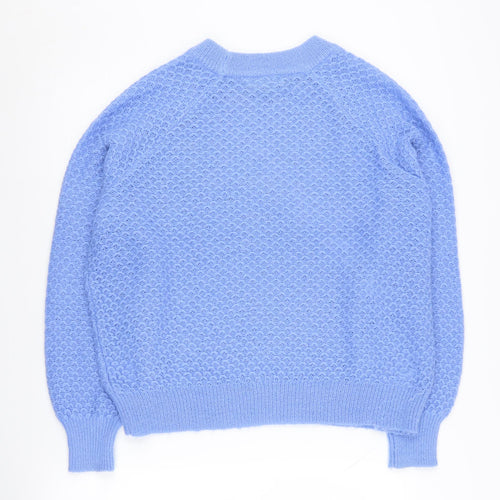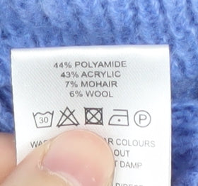 Alice Collins Women Blue Size 14 Cotton Knit Crew Neck Jumper