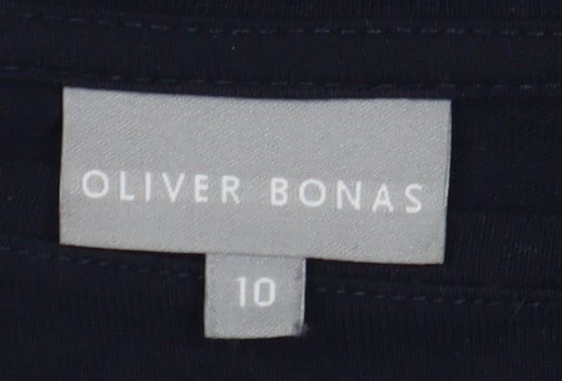 Discover casual elegance with this Oliver Bonas Women's Black T-Shirt. Crafted in a breezy, comfortable viscose fabric, this top is perfect for versatile styling throughout the year. The round neckline and classic short sleeves provide a timeless silhouette, while the fitted design ensures a flattering fit for any body type. Its solid black colour offers endless pairing possibilities, making it a staple piece in any wardrobe. Pair it with jeans for an effortless everyday outfit, or with a skirt and accessories for a more polished look. The t-shirt is machine washable, providing ease of care, just what every modern woman needs. Despite being used, it remains in excellent condition, allowing you to enjoy a high-quality garment at an attractive price. Upgrade your wardrobe with this chic and comfortable Oliver Bonas T-shirt.