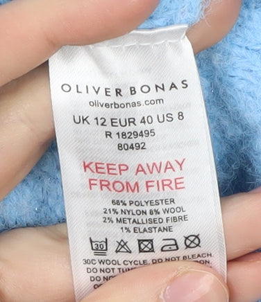 Add a touch of cosy elegance to your wardrobe with this Oliver Bonas women's roll neck jumper in a delightful blue hue. Crafted with comfort and style in mind, this chunky-knit jumper is perfect for keeping warm during the cooler months. The roll neck design provides a classic yet modern touch, ideal for any casual or semi-formal occasion. With long sleeves and a regular fit, it ensures you stay snug while maintaining a relaxed look. Made from a blend of polyester, nylon, wool, and elastane, it offers a soft and stretchy texture with a hint of luxury, evident in the material's composition of 68% Polyester, 21% Nylon, 8% Wool, 2% Metallised Fibre, and 1% Elastane. Although it shows slight signs of wear, this jumper remains in excellent condition, machine washable for easy care. Whether paired with jeans for a casual outing or trousers for a more refined ensemble, this versatile piece is a must-have. Embrace the understated charm and practical warmth of this Oliver Bonas jumper, and make it a staple in your seasonal wardrobe.