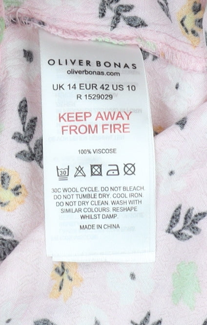 Introducing this stunning multicoloured floral blouse from Oliver Bonas, perfect for those looking to add a touch of elegance to their spring and summer wardrobe. Crafted from lightweight and breathable woven viscose, this blouse is designed with a collared neckline and features charming balloon sleeves for a chic yet casual look. The regular fit ensures comfort while maintaining a stylish silhouette. Ideal for casual occasions, this blouse boasts a beautiful floral pattern and button closure, making it a versatile addition to any woman's wardrobe. In excellent condition with no visible defects, it is machine washable for easy care. Discover the delicate charm and quality craftsmanship of this Oliver Bonas blouse, a must-have for any fashion-forward individual.