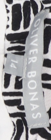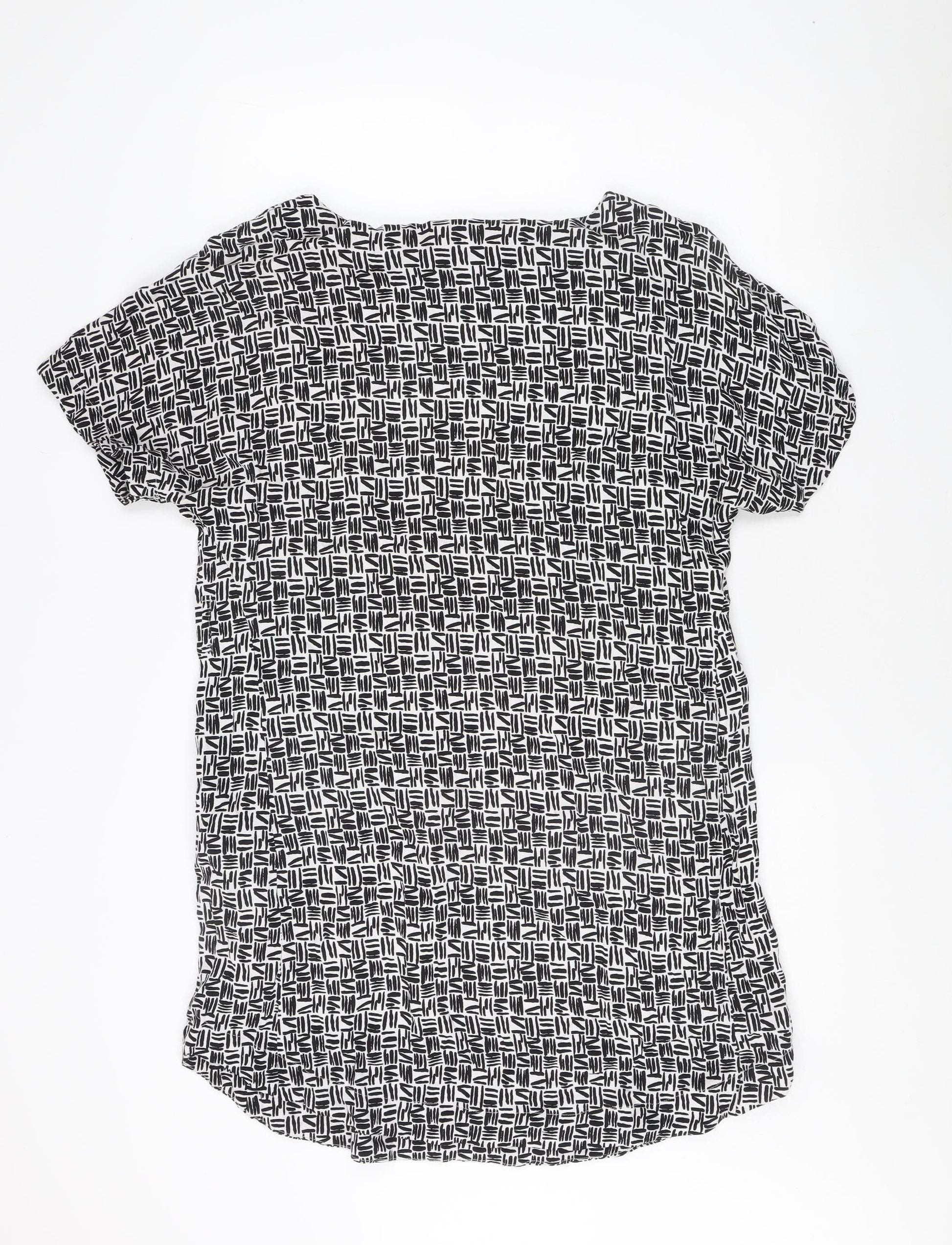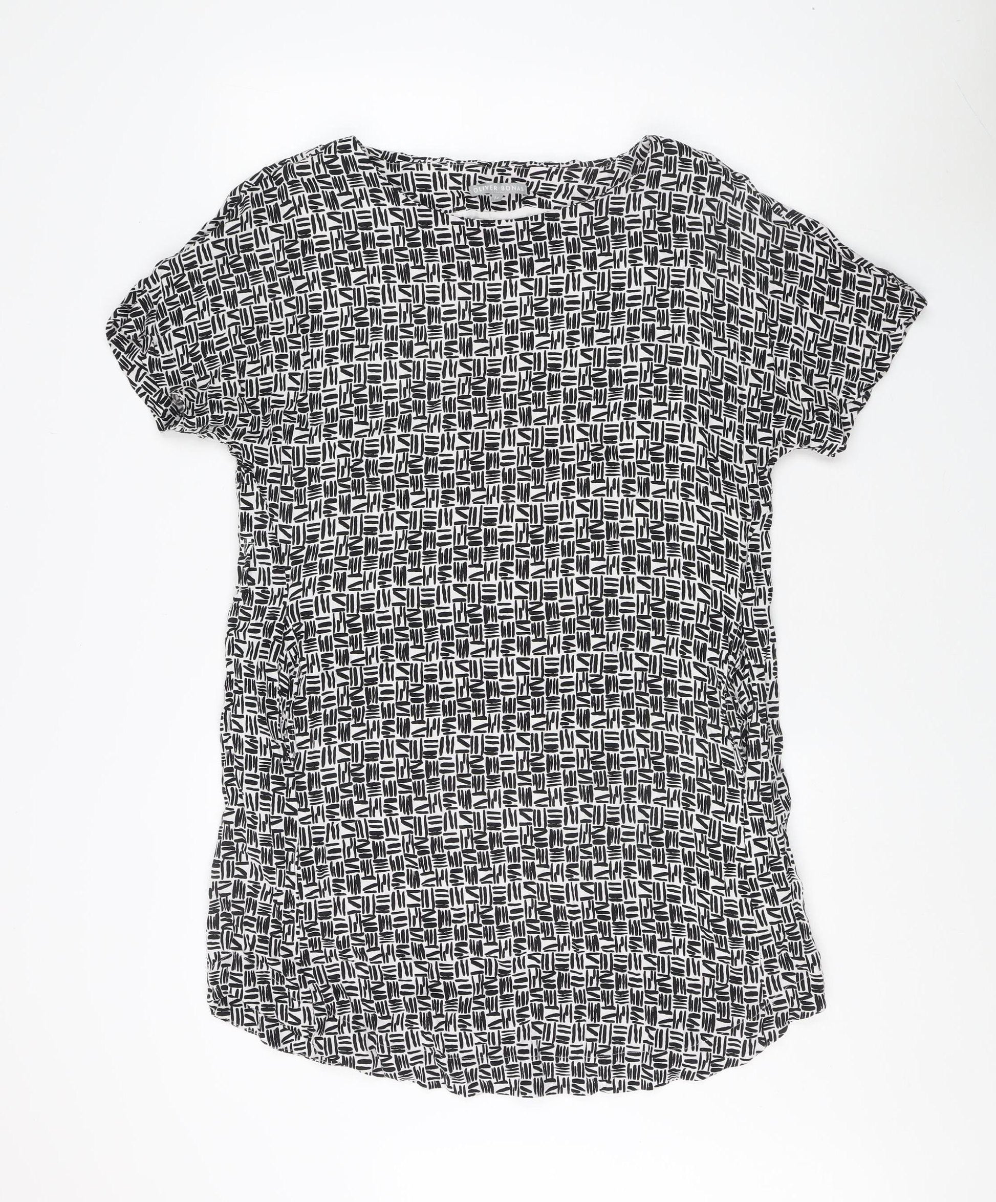 Discover effortless style with this Oliver Bonas women's T-shirt, a versatile addition to your wardrobe. Perfect for casual outings, the shirt features a striking black geometric pattern on a white background, adding an artistic touch to your look. Crafted with a woven fabric, this shirt promises a comfortable fit and durability. The short sleeves and classic round neckline make it suitable for layering or wearing alone, adapting seamlessly to both warm and cooler days. Whether you're heading to a weekend brunch or a relaxed day at home, this regular-fit T-shirt will keep you in style with its timeless design. Ideal for all seasons, this garment is easy to match with your favourite pair of jeans or skirt. Embrace your fashion-forward mindset with this charming yet sophisticated piece from Oliver Bonas, priced attractively for an affordable fashion pick.