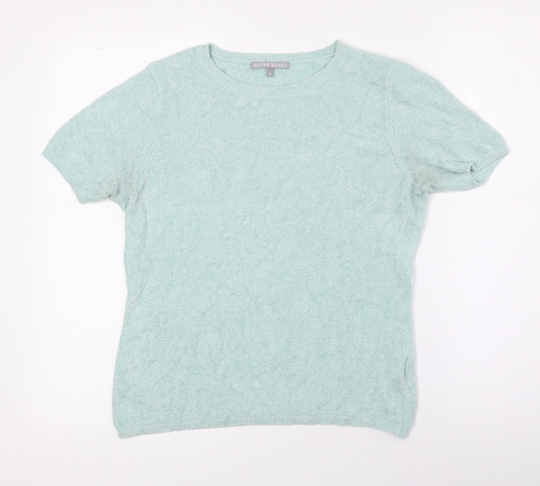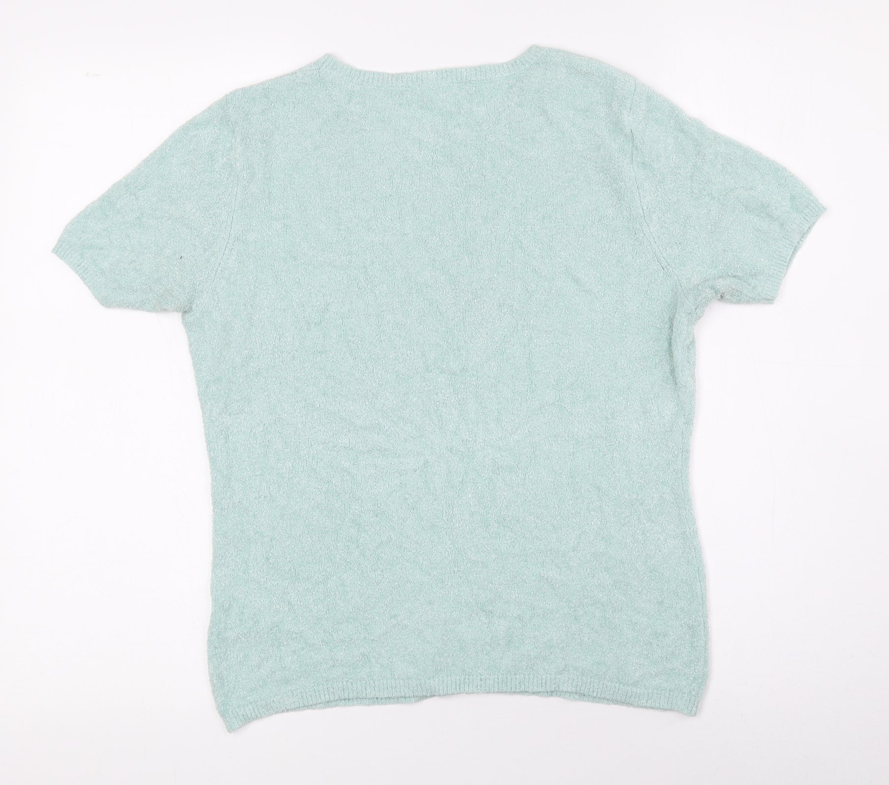 Womens Green Crew Neck Viscose Pullover Jumper Size 6 - Fuzzy Knit
