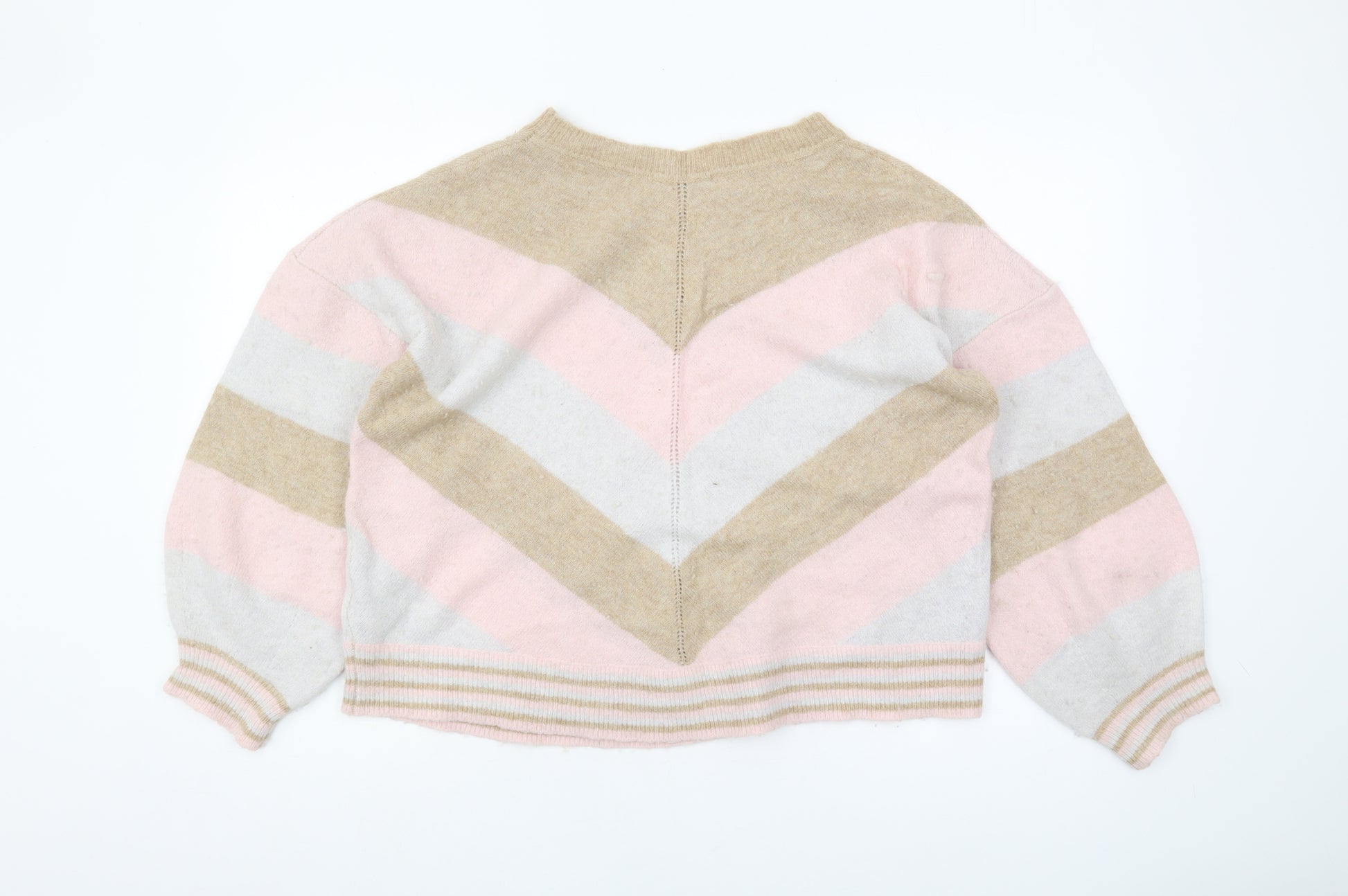 Upgrade your winter wardrobe with this elegant Oliver Bonas pullover. Featuring a chic striped pattern in soothing multicolours, this women's jumper offers a relaxed fit ideal for casual wear. Crafted from a premium blend of materials including acrylic, polyamide, wool, alpaca, and elastane, it promises both warmth and comfort. The crew neckline and long sleeves make it perfect for layering during the colder months. Although used, it remains in excellent condition with only slight signs of wear, making it an attractive choice for those seeking style and quality at a value price. Suitable for autumn and winter seasons, this machine washable garment is effortlessly stylish and easy to maintain. Add a touch of sophistication to your casual attire with this beautifully designed piece.