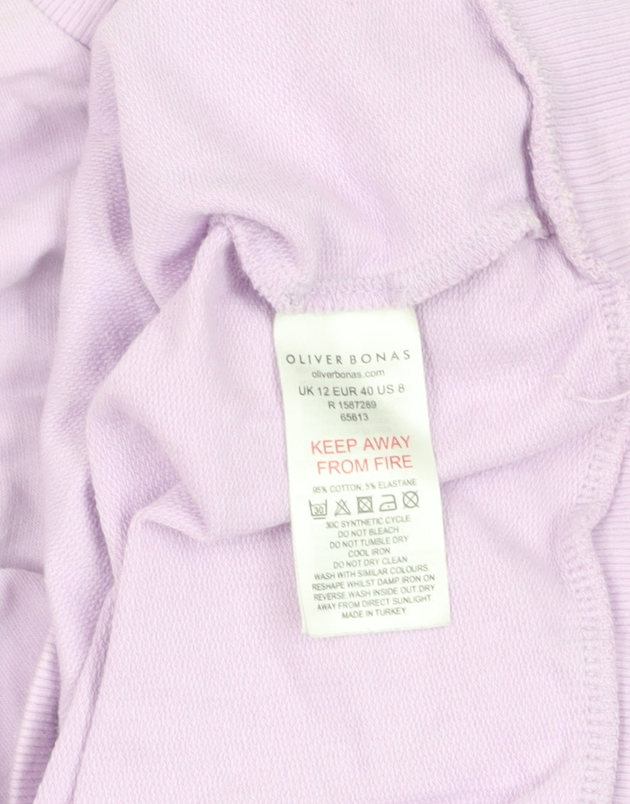Step into a world of style and comfort with this elegant Oliver Bonas Women's Pullover Sweatshirt. Designed in a lovely shade of purple, this sweatshirt is perfect for adding a splash of colour to your casual wardrobe. Crafted from a blend of 95% cotton and 5% elastane, this jersey sweatshirt offers both softness and a touch of stretch for all-day comfort. The crew neck and long sleeves provide a classic silhouette, while the easy-care fabric ensures it stays looking fresh with minimal effort. Ideal for all seasons, this versatile piece can be paired with jeans for a laid-back look or dressed up with accessories for a more polished ensemble. Despite being in excellent pre-owned condition, it retains no visible tags. Slight wrinkles are present but do not detract from its charm. With its regular fit and size 12 assurance, this sweatshirt offers a flattering fit for many occasions. Embrace effortless chic with this stunning Oliver Bonas pullover, a must-have for every fashion-conscious woman. Its versatility makes it suitable for casual outings, keeping you stylish wherever your day takes you.