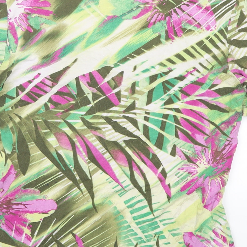 Womens Green Floral Basic T-Shirt Size 12 - Pink Flowers