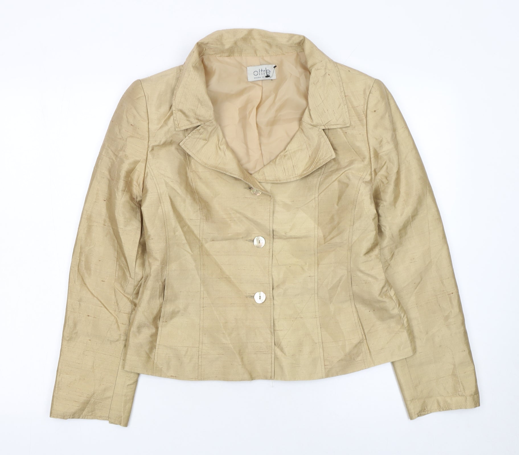Women Beige Silk Single-Breasted Suit Jacket UK 10