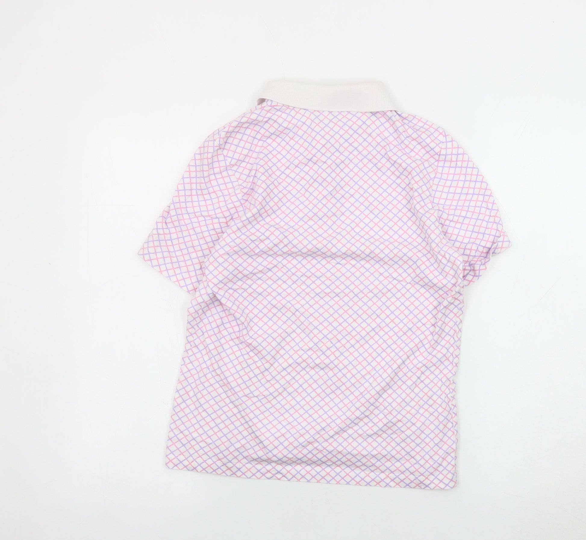 Elevate your casual wardrobe with this One Up Golf Men's Polo Shirt, perfect for both golf and everyday wear. Crafted from 100% cotton, this polo provides supreme comfort and breathability. The multicoloured argyle pattern gives a classic yet stylish look, suitable for any casual occasion. Short sleeves and a collared neckline make it ideal for warm weather, while the button accents add a touch of refinement. Designed in a regular fit, it flatters various body types without compromising comfort. Whether you're hitting the golf course or heading out with friends, this versatile polo will keep you looking sharp. Machine washable for easy care, making it a practical addition to any clothing collection. Despite its excellent pre-owned condition, there are no visible signs of wear, ensuring you receive a quality garment. Choose this polo for an effortless blend of style and functionality.