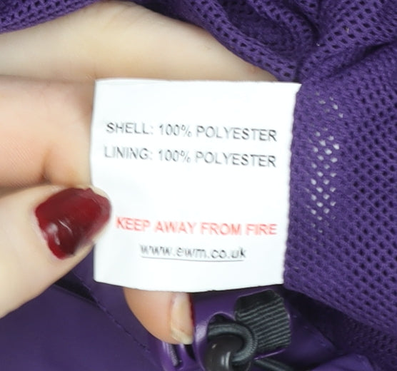 Stay ready for any weather with this One Valley women’s waterproof jacket in a vibrant purple shade. Designed as a light yet durable outer layer, this practical rain coat delivers comfort and style for everyday wear. Crafted from 100% polyester for both the shell and lining, it offers long-lasting performance with a smooth, water-repellent finish. The jacket features a full zip fastening for easy wear complemented by protective snap closures at the top and bottom. Its hood design provides added protection from wind and rain, making it ideal for outdoor adventures or the school run. Multiple zipped pockets ensure secure storage for essentials, while the mid-length cut gives a flattering, streamlined fit. The lightweight construction allows for easy layering over jumpers or t-shirts, ideal for transitional seasons such as spring and autumn, while still offering enough coverage for chilly winter days. The deep purple colour gives it a bold, sporty look suitable for casual outings, travel, or active lifestyles. Combining functional design with timeless practicality, this One Valley jacket ensures you stay dry while maintaining a stylish edge. Perfect for hiking trips, commuting, or simply keeping off the drizzle, it represents great value and reliable quality. In very good pre-owned condition with only minimal signs of wear, this jacket has been well looked after and remains ready for immediate wear. Whether you need a dependable waterproof for outdoor adventures or a casual jacket for everyday errands, this One Valley women’s hooded jacket is a smart and versatile wardrobe staple.