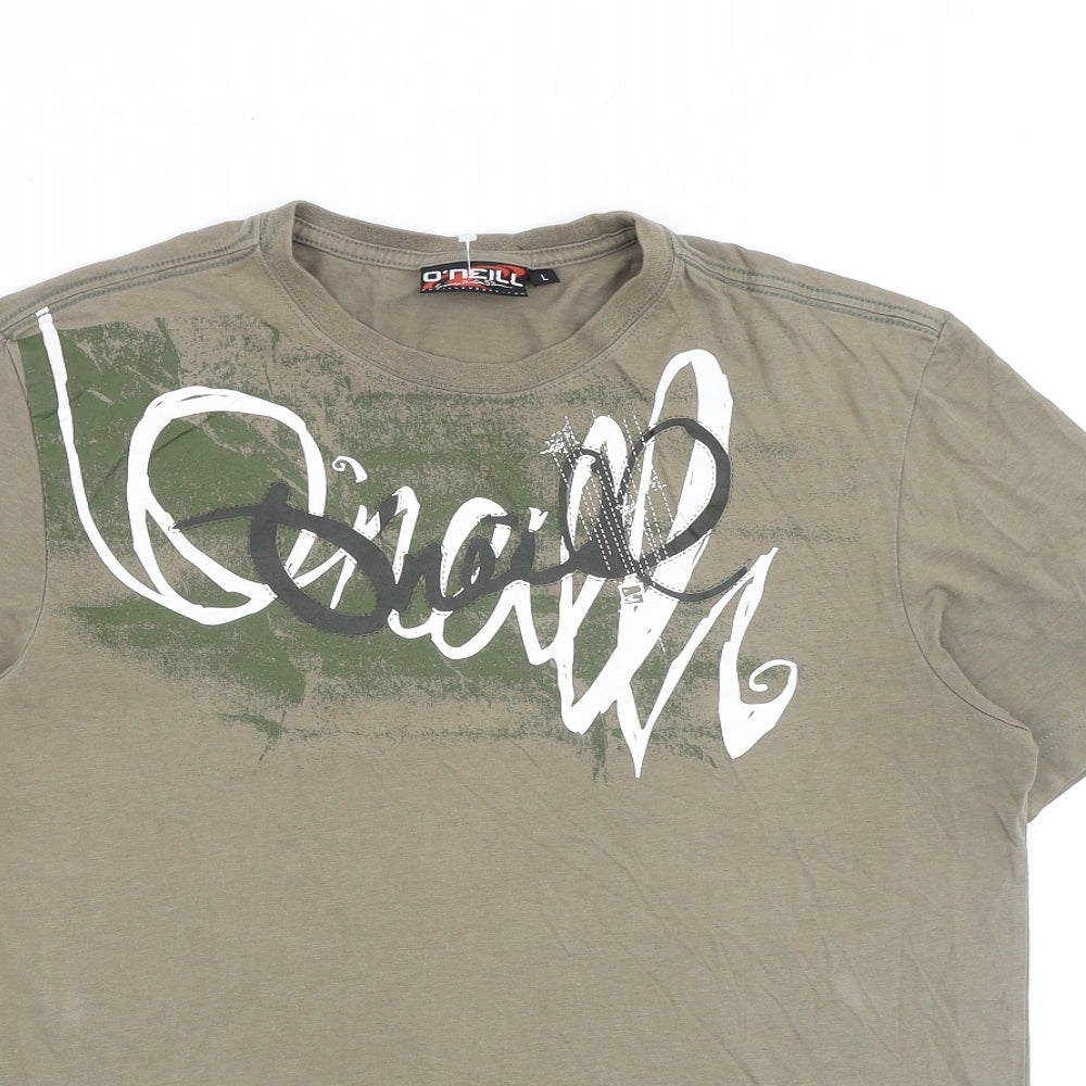 Boys Green Cotton Basic T-Shirt Size L Round Neck Pullover