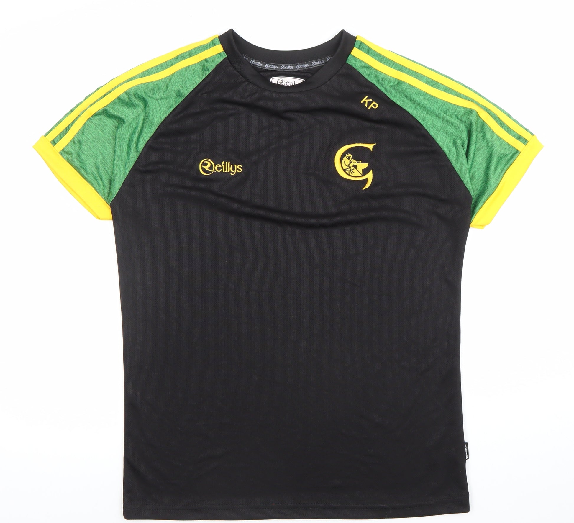 This O'Neills men’s athletic T-shirt delivers both comfort and performance, designed with the brand’s classic sportswear expertise. Crafted from 100% polyester, the shirt offers excellent breathability and moisture-wicking performance, making it ideal for football, running, gym sessions, or casual athletic wear. Its lightweight construction ensures free movement and an unrestrictive fit, while the crew neckline and short raglan sleeves enhance comfort and mobility. Presented in a sleek black base with vibrant green and yellow shoulder panels, accented by the O'Neills logo in gold embroidery, this top boasts a bold, sporty design that’s unmistakably modern. The soft jersey fabric helps maintain comfort even during intense workouts, and the athletic fit complements the physique without feeling tight. Styled for everyday use or training sessions, it’s versatile enough to move from the gym to casual outings. Durably constructed with attention to stitching and finish, this T-shirt provides long-lasting wear and easy maintenance – simply machine washable to keep it fresh and ready to go. The simple pullover design adds convenience, perfect for active lifestyles. Suitable for a range of sports activities, including football, running, and gym training, it makes a dependable addition to any athletic wardrobe. In excellent condition with only very light signs of previous wear, this O'Neills performance jersey maintains a clean, well-kept appearance. The tag confirms 100% polyester composition, ensuring the user gets a durable, breathable, and quick-drying garment. Whether you’re training, playing sports, or seeking a comfortable everyday activewear option, this top stands out for quality, function, and style. A great choice for the active man who values both performance and design in one optimal piece.