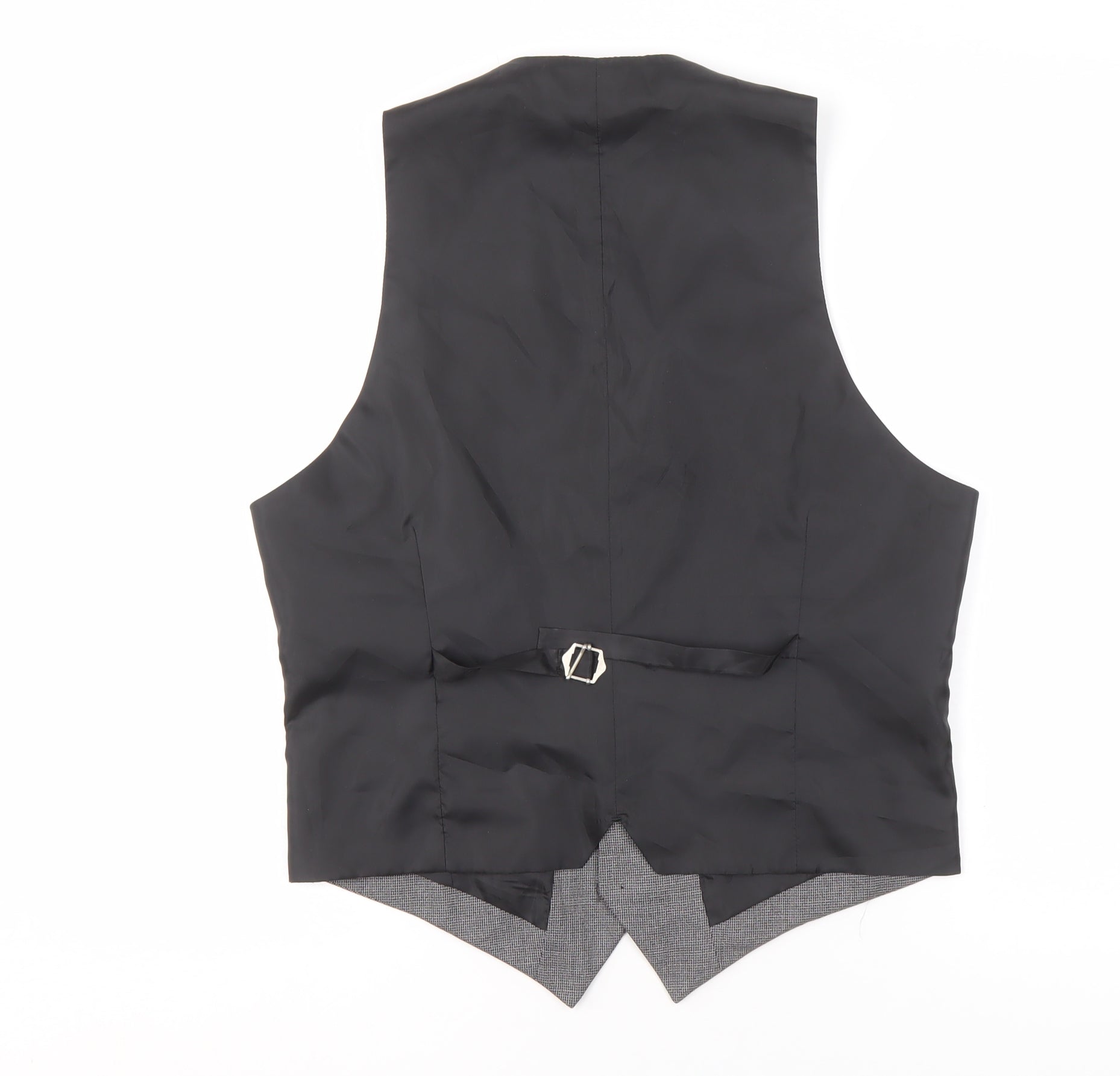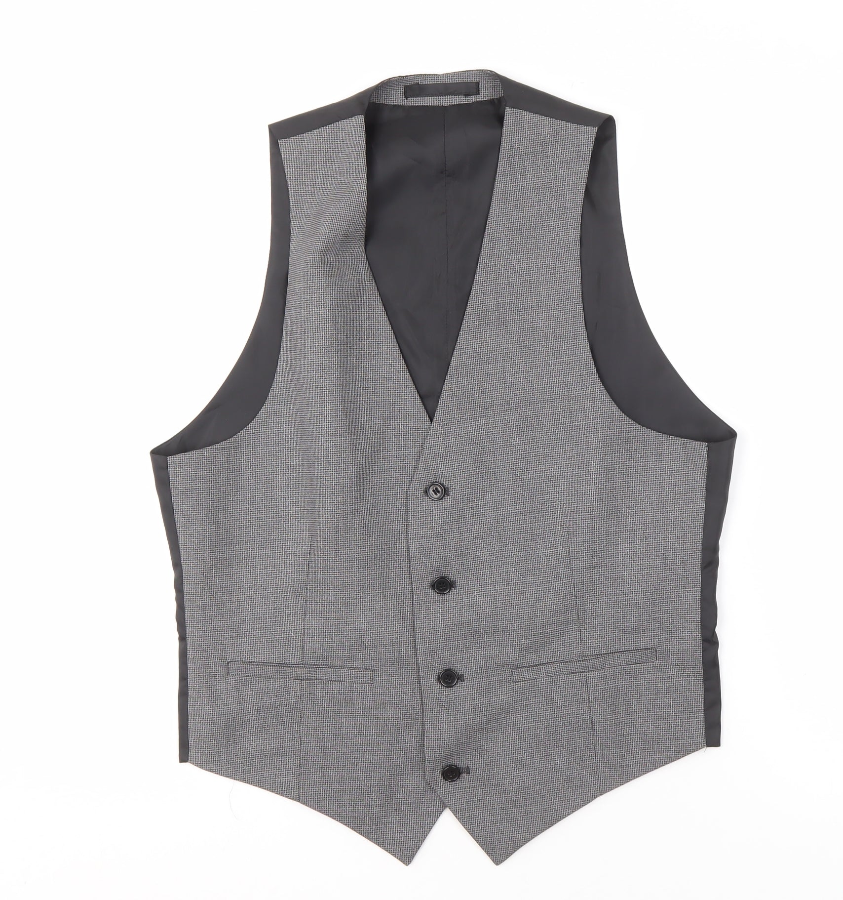 Elevate your formal attire with the OneSixFive Men's Grey Slim Fit Waistcoat. Expertly crafted from a blend of 74% polyester, 24% viscose, and 2% spandex, this waistcoat combines elegance with comfort and flexibility. The grey check pattern adds a touch of sophistication, making it ideal for formal occasions. The slim fit design enhances your silhouette, ensuring a sleek appearance that pairs perfectly with any suit. Designed for men, this waistcoat is available in size 38S and features a classic waistcoat style, making it a versatile addition to your wardrobe. Suitable for weddings, business meetings, or any formal event, this waistcoat ensures you look your best. With its excellent condition, you can be confident in your purchase, offering style and quality with no visible wear or damage.