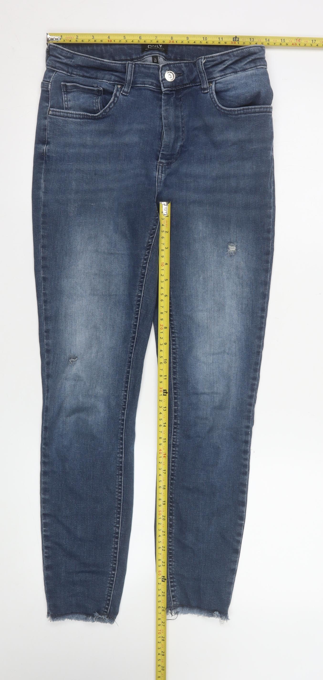 ONLY Women's Blue Skinny Jeans L 32 Distressed Denim