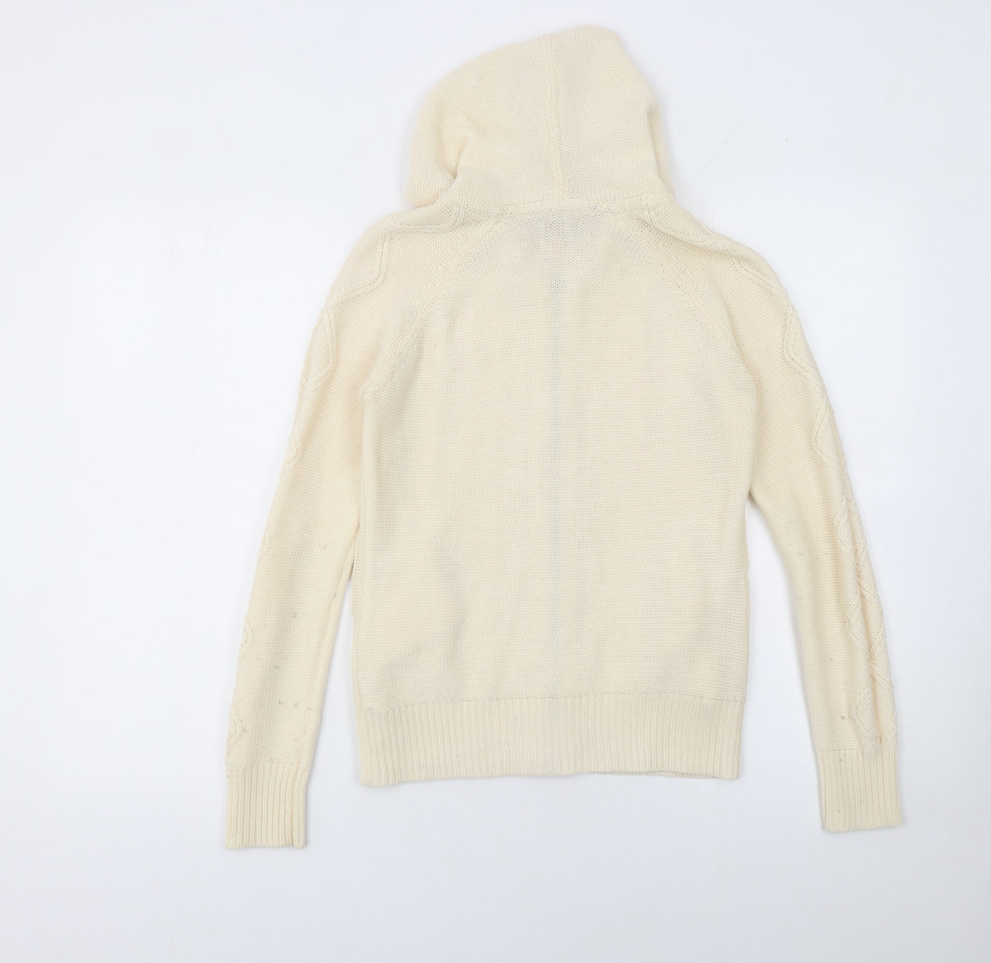 ONLY Womens Ivory Hooded Cable-Knit Full Zip Jumper Size M
