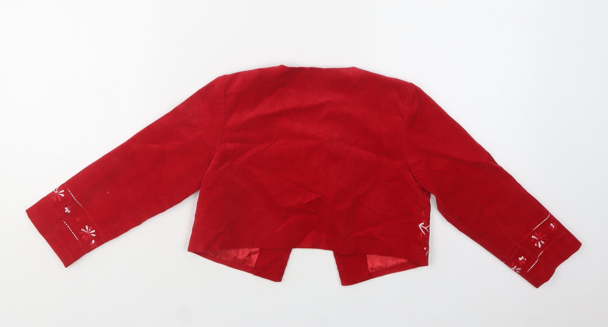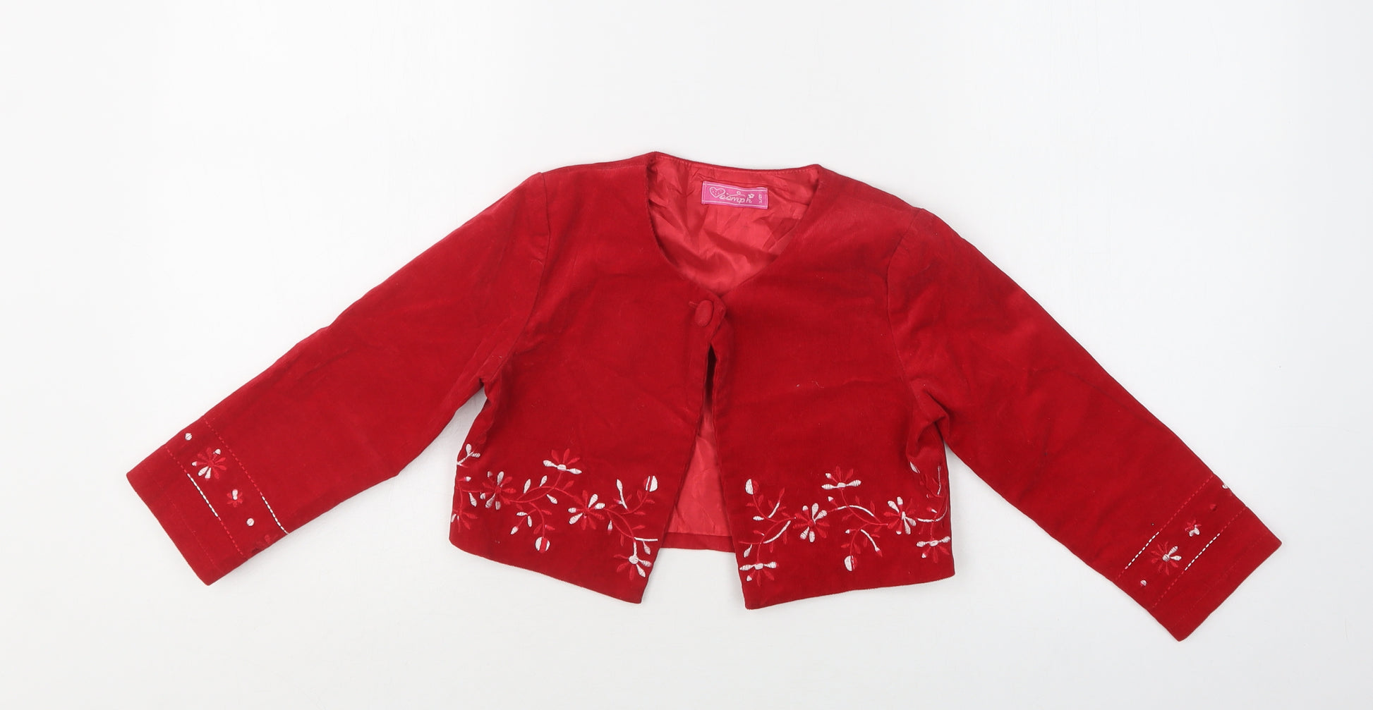 Girls Red Floral Basic Jacket Jacket Size 5-6 Years Button