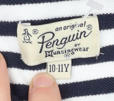 Elevate your young one's wardrobe with this classic Boys Polo Shirt by Original Penguin. Perfect for casual outings, this shirt boasts a timeless blue and white striped pattern, adding a nautical flair to their everyday look. The collared neckline and short sleeves embody a traditional polo style with a modern twist, allowing versatile pairing with jeans, shorts, or chinos. Made from 100% cotton, this polo offers optimal comfort, breathability, and ease of wear, ensuring they feel as good as they look throughout the day. Perfect for all seasons, the shirt's regular fit is designed to provide unrestricted movement, allowing your child to enjoy their favourite activities with ease. The material is durable and machine washable, making maintenance a breeze for busy parents. This polo shirt is an excellent addition for any young fashion aficionado seeking a cool yet classic look. Whether for a day at school, out on a family picnic, or any casual occasion, this polo shirt is sure to make a statement. With its subtle stripes and impeccably styled collar, it invites compliments and adds flair to any outfit. Available in size 10-11 years, this piece promises to fit beautifully and last through seasons of wear. Grab this Essential Polo Shirt today and add a touch of Original Penguin elegance to your child's wardrobe.