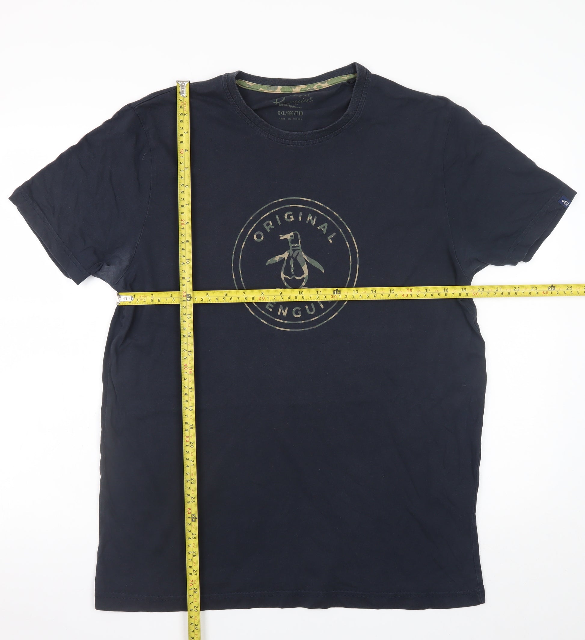 Refresh your casual wardrobe with this stylish Original Penguin Men's Blue Graphic Logo T-Shirt, perfect for relaxed everyday wear. Crafted from 100% cotton, this soft, breathable jersey fabric ensures lasting comfort and durability through the seasons. In a classic navy blue tone, the shirt features the iconic Original Penguin circular logo printed on the chest—a timeless design that blends vintage charm with modern appeal. The regular fit cut, short sleeves, and crew neckline provide a versatile shape that looks great alone or layered under a jacket. Ideal for spring, summer, and autumn wear, this T-shirt offers a lightweight and easy-care option that can withstand regular washing. The piece reflects Original Penguin’s celebrated attention to quality, combining effortless American heritage styling with everyday practicality. Its subtle graphic print gives it personality without overpowering your look, making it equally suitable for casual days out, relaxing at home, or pairing with jeans and trainers for weekend outings. Made in Turkey, the shirt draws on a long-standing reputation for craftsmanship. Though lightly worn, the T-shirt remains in very good overall condition, showing only minor signs of wear on the logo print without any marks, holes, or damage. This dependable and timeless piece offers a smart choice for any man seeking a reliable, stylish basic that never goes out of fashion. A must-have addition for fans of easygoing sophistication and classic comfort.