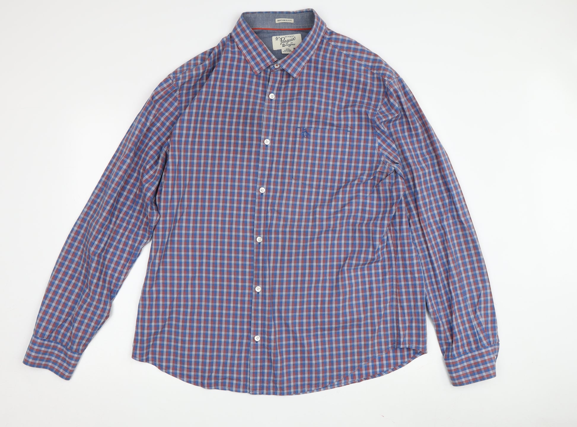 Enhance your casual wardrobe with this dapper Original Penguin Men's Shirt, a perfect fusion of style and comfort. Crafted for the modern gentleman, it comes in a versatile size 2XL, catering to those who appreciate a relaxed yet tailored fit. The shirt features a stunning multicoloured check pattern that effortlessly blends bold blues and reds, adding a pop of colour to any ensemble. Made entirely of high-quality cotton, this shirt prides itself on being soft, breathable, and perfect for all-day wear. Its woven fabric type ensures durability while maintaining a smooth texture against the skin. Its long sleeves make it an ideal choice for layering, offering style versatility across seasons, making it a reliable addition all year round. The button-down collar style enhances its classic appeal, perfect for both casual gatherings and more refined occasions. Ease into care with its machine washability, allowing seamless maintenance and longevity. Whether you’re heading to a casual weekend outing or looking for a reliable option for daily wear, this shirt promises to elevate your dressing game. The absence of original tags confirms a gently used status without compromising on the garment's quality and appeal. Don’t miss out on this wardrobe staple that combines Original Penguin’s signature style with practical fashion elements. Secure yours today to ensure that effortlessly stylish look, whether paired with jeans, chinos, or layer beneath a blazer for added sophistication. A standout piece that truly covers all bases of fashion essentials.