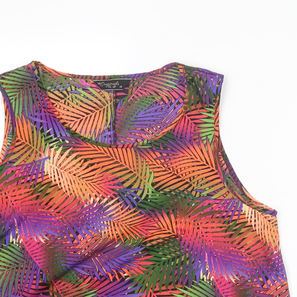 Womens Multicoloured Geometric Polyester Basic Tank Size 18 Scoop Neck - Palm Print