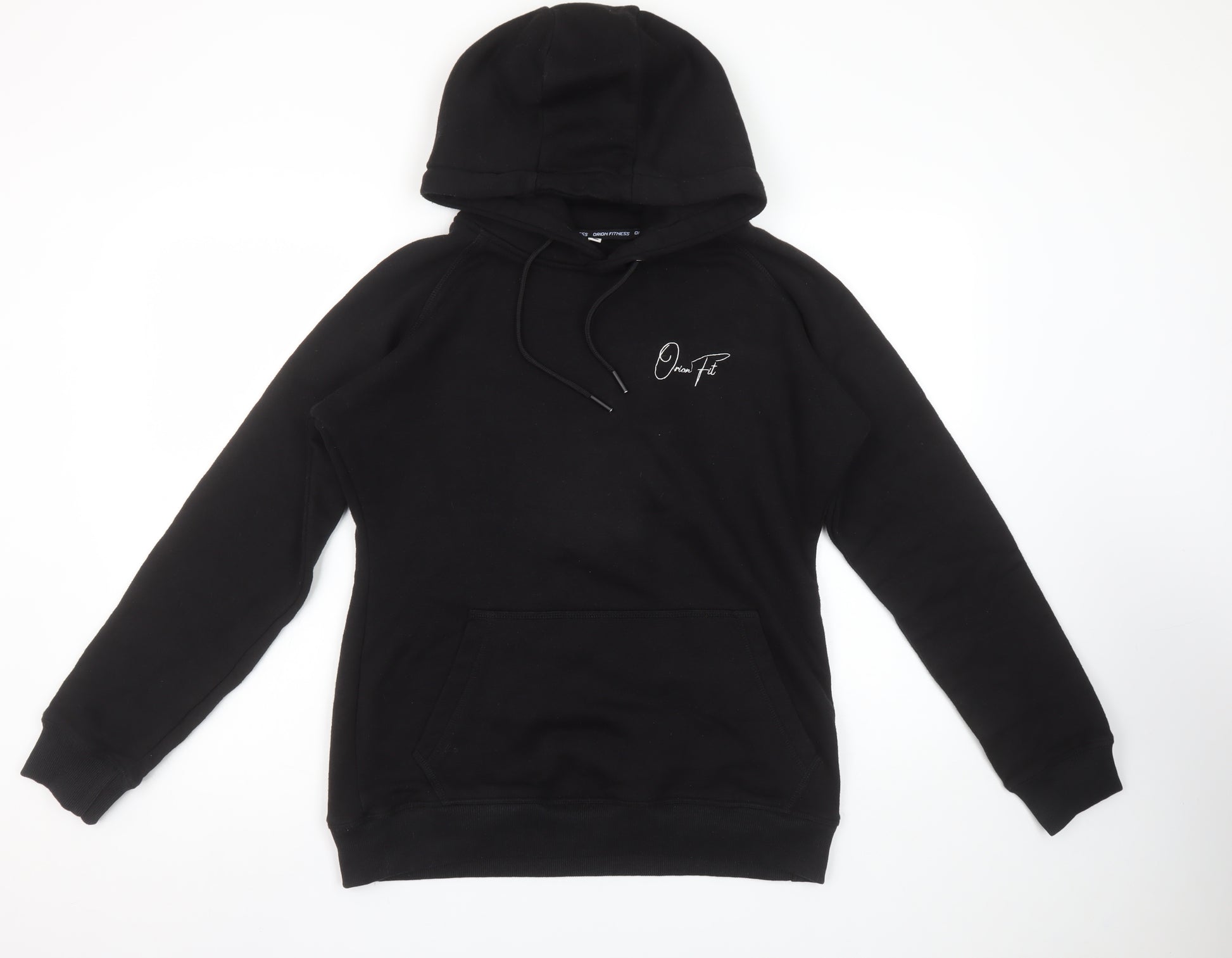 Stay comfortable and stylish with this Orion Fitness women's black pullover hoodie, perfect for both activewear and casual settings. Crafted from 100% polyester, this hoodie features a soft, lightweight feel that makes it ideal for layering or wearing alone. The classic pullover design includes an adjustable drawstring hood and a spacious front kangaroo pocket, providing practicality and warmth. Designed for both fashion and function, the Orion Fitness logo detailing at the chest adds a touch of minimalistic branding that enhances its sporty appeal. This hoodie is ideal for gym sessions, jogging, or simply lounging in comfort. The breathable and moisture-wicking fabric ensures you stay dry, whether you’re working out or taking on your daily routine. The ribbed hem and cuffs help maintain a snug fit while keeping out drafts, making it suitable for all seasons. Its regular fit flatters the feminine silhouette without being restrictive, offering maximum comfort throughout the day. In excellent pre-owned condition with no visible marks, snags or damage, this hoodie is ready to wear. Its timeless black colour makes it incredibly versatile, pairing easily with jeans, leggings, or joggers. For those looking for a reliable and stylish addition to their activewear wardrobe, this Orion Fitness hoodie offers a perfect balance of practicality, durability, and style. A great choice for workouts, travel, or casual days out, designed to keep you comfortable while maintaining a sleek, modern aesthetic.