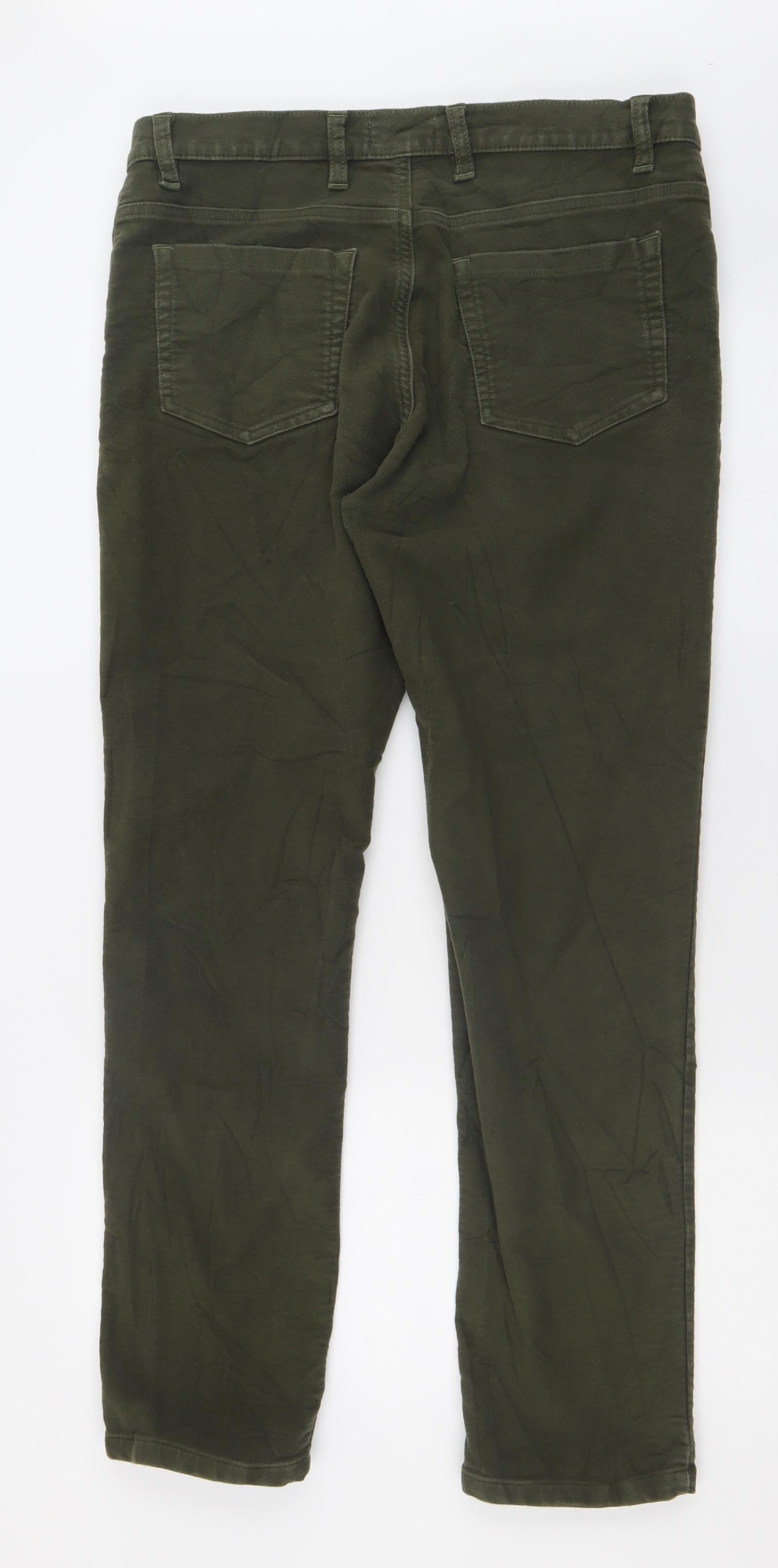 Womens Green Cotton Trousers Size 16 L29 in Regular Button