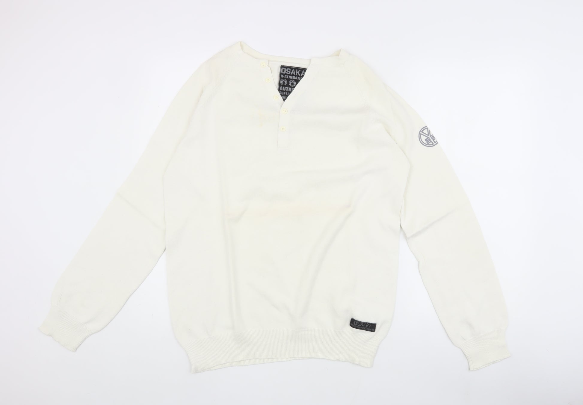 OSAKA N-Generation Men's White Henley Long Sleeve T-Shirt L