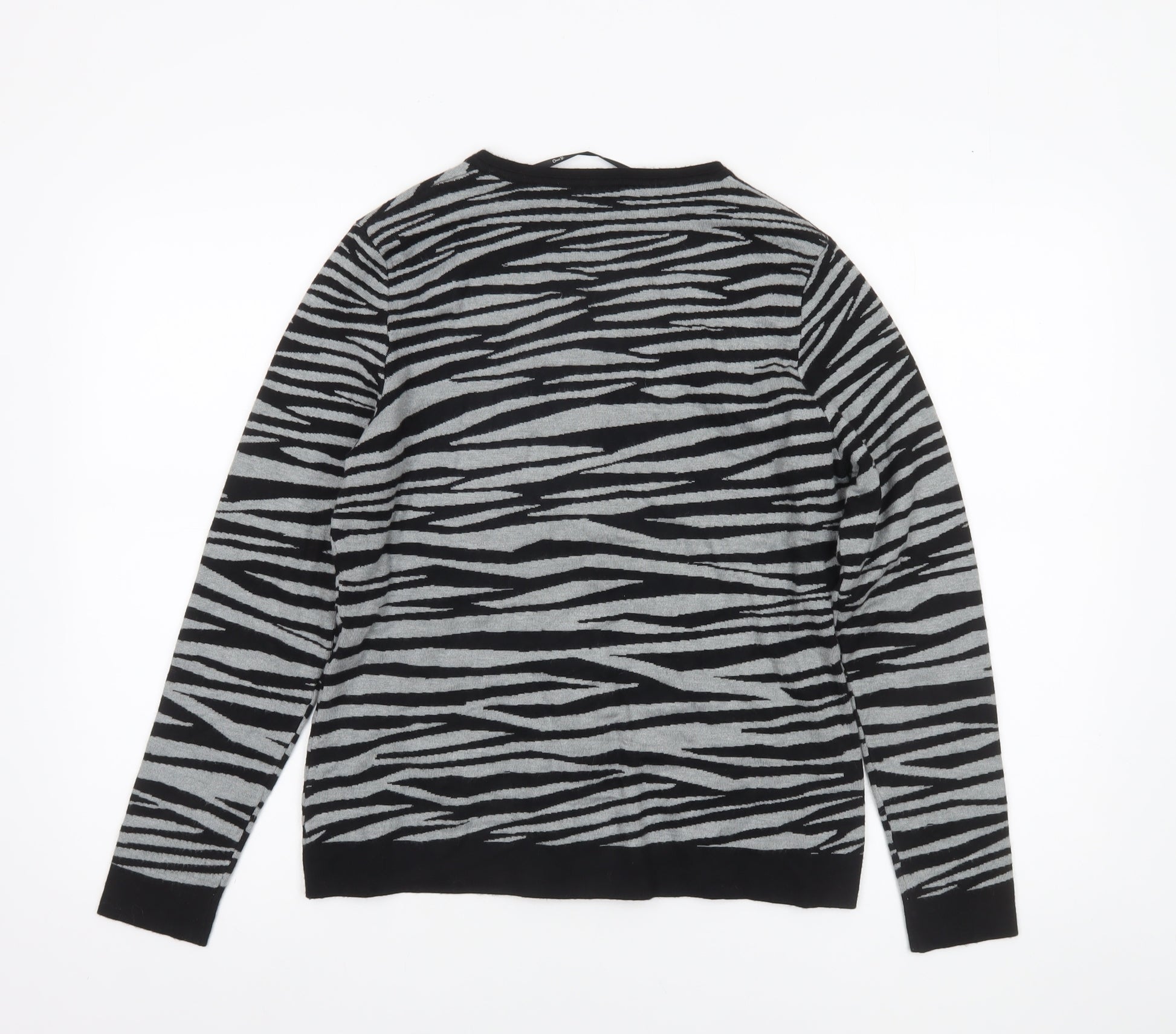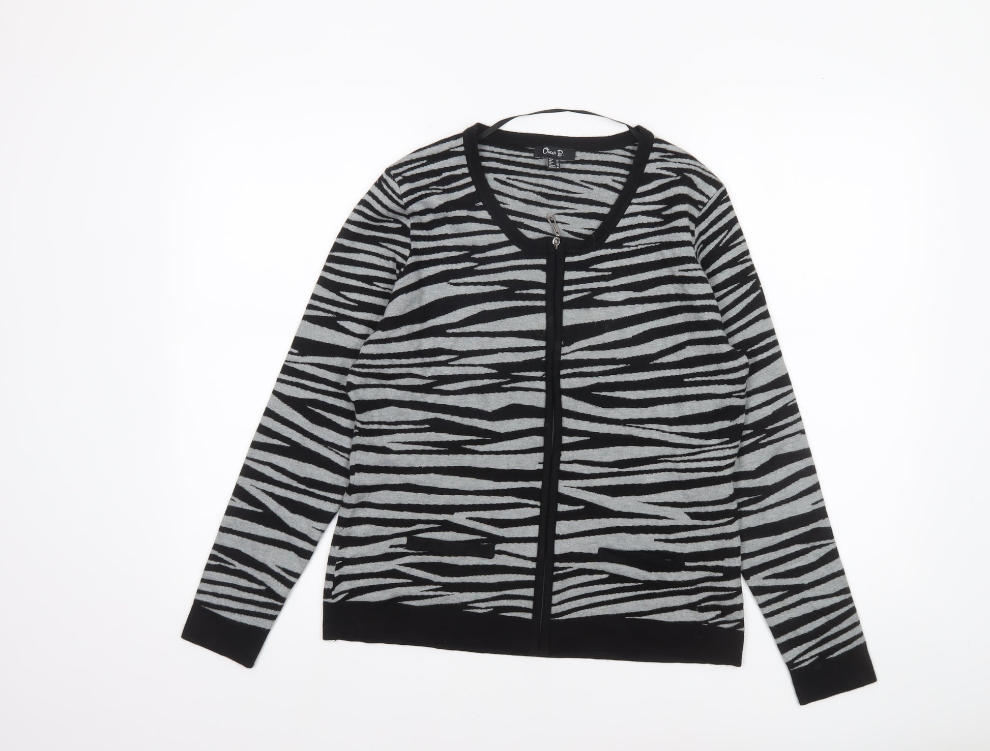 Women Black Zebra Print Full Zip Cardigan Size 14