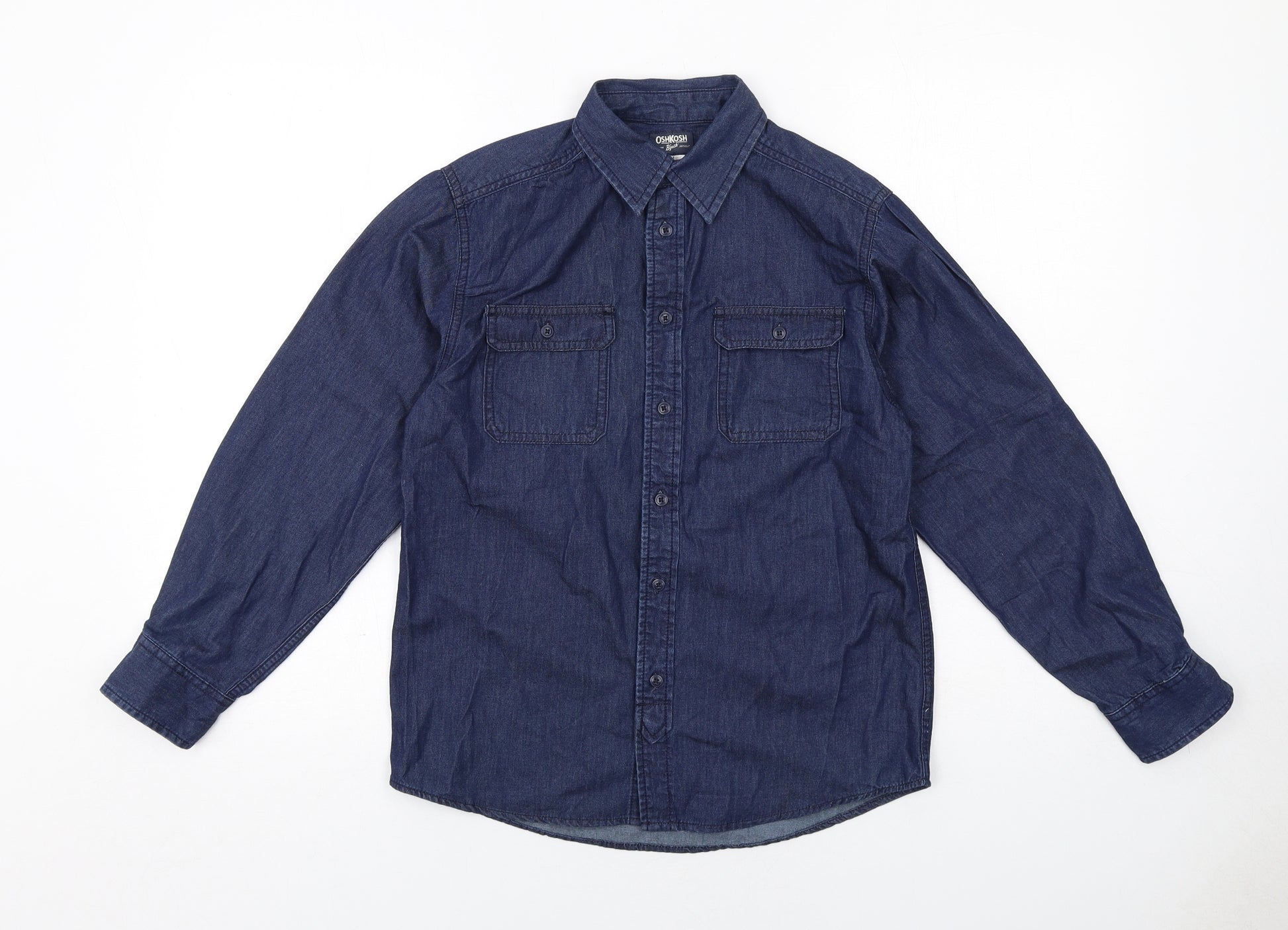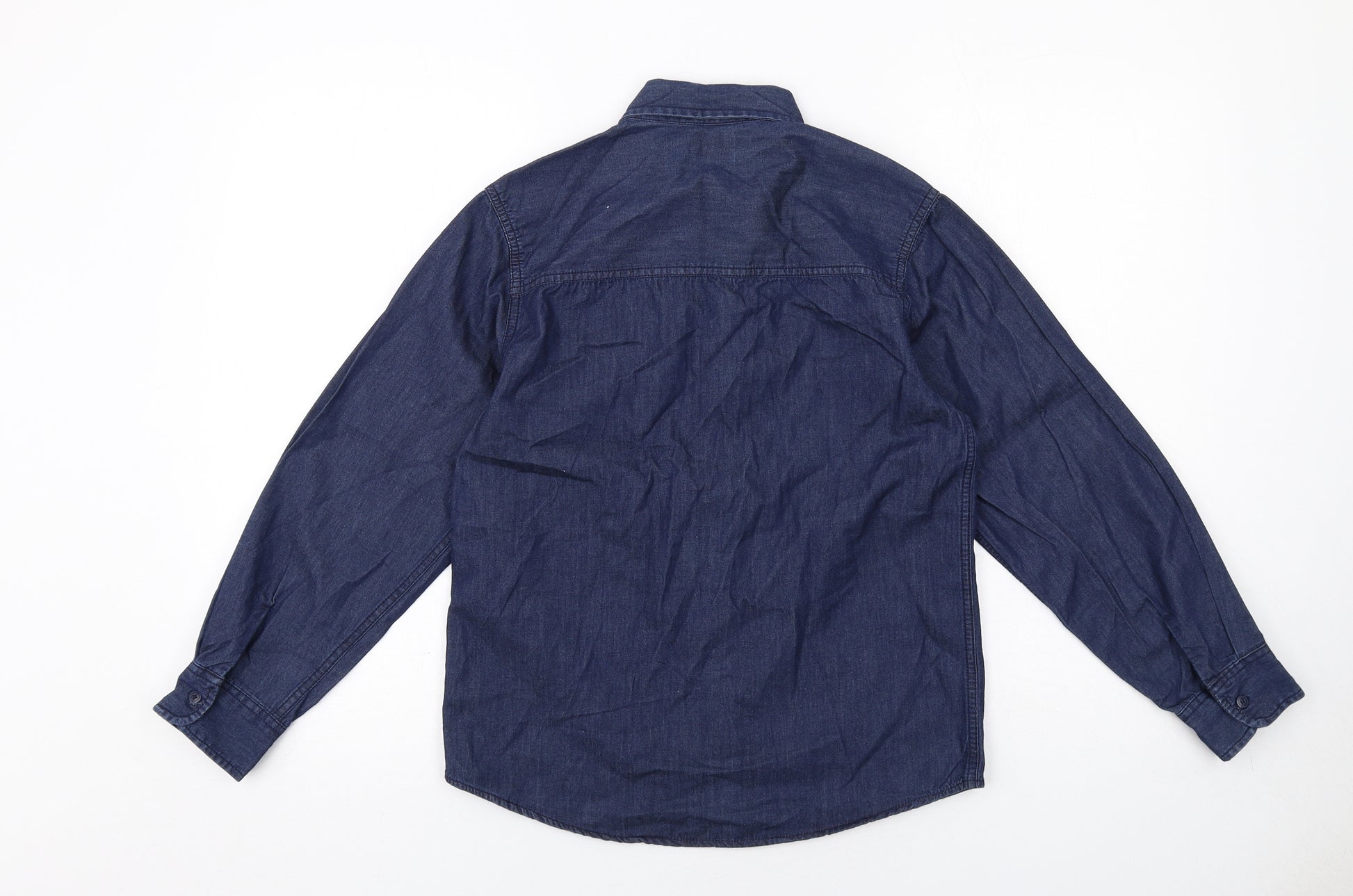 Womens Blue Cotton Basic Button-Up Size 12 Collared