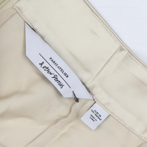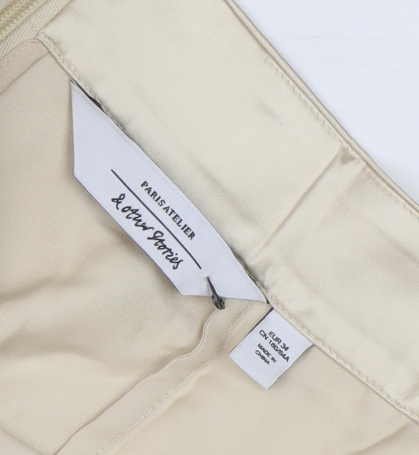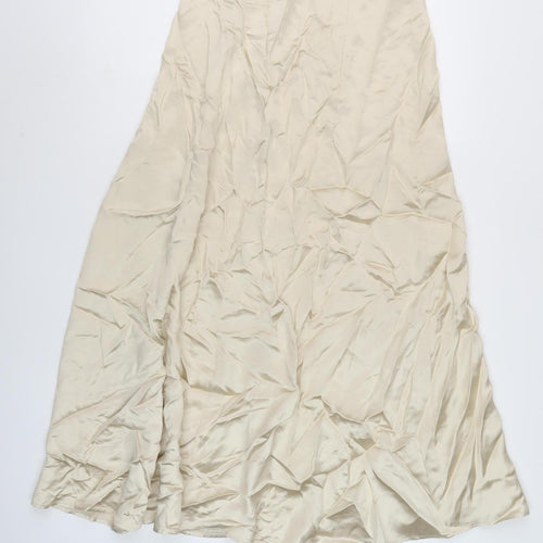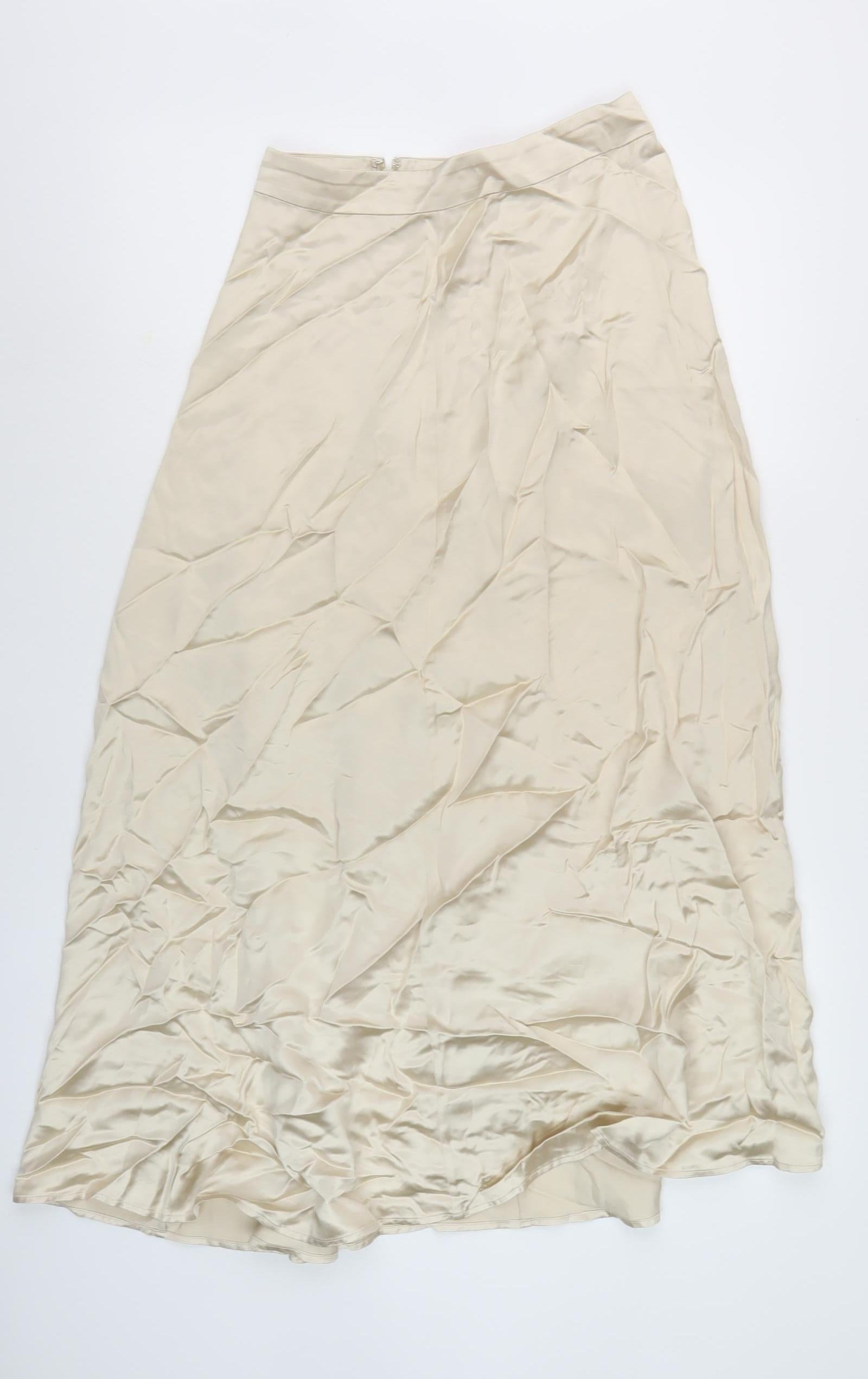 Step out in style with this elegant & Other Stories A-Line midi skirt, crafted in a luxurious beige satin silk that exudes sophistication. Perfectly tailored for women, this skirt offers a regular size type fit that complements your silhouette. The simplistic, no-pattern design allows for versatile wear, making it a staple piece for any wardrobe. Whether you're aiming for a casual look or something more formal, this zip closure skirt fits every occasion and radiates timeless charm. Made with the finest silk material, the buttery smooth texture feels exquisite against the skin, promising comfort and elegance throughout the wear. Enhance your closet with a staple that's both fashionable and high-quality, and enjoy how effortlessly it elevates your ensemble.