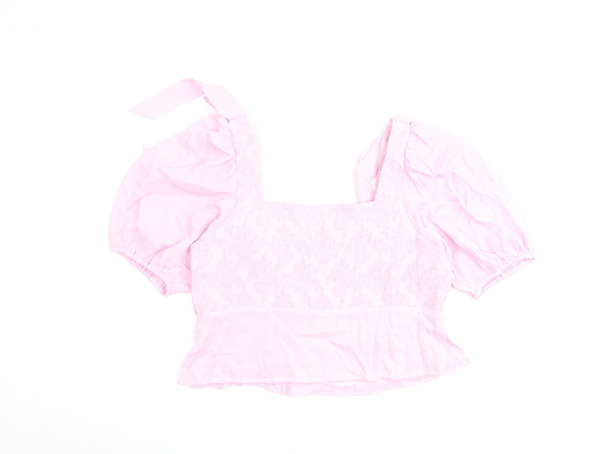 Womens Pink Polyester Basic Blouse Size 16 Square Neck
