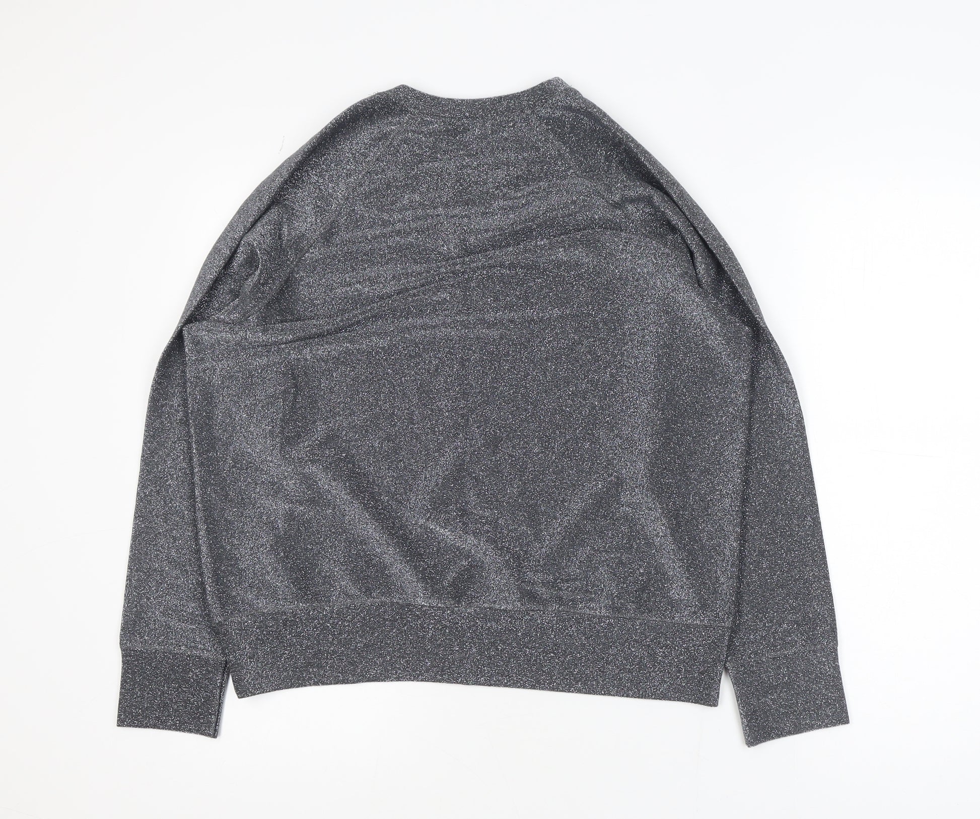 Women's Grey Glitter Long Sleeve Basic Blouse Size 10
