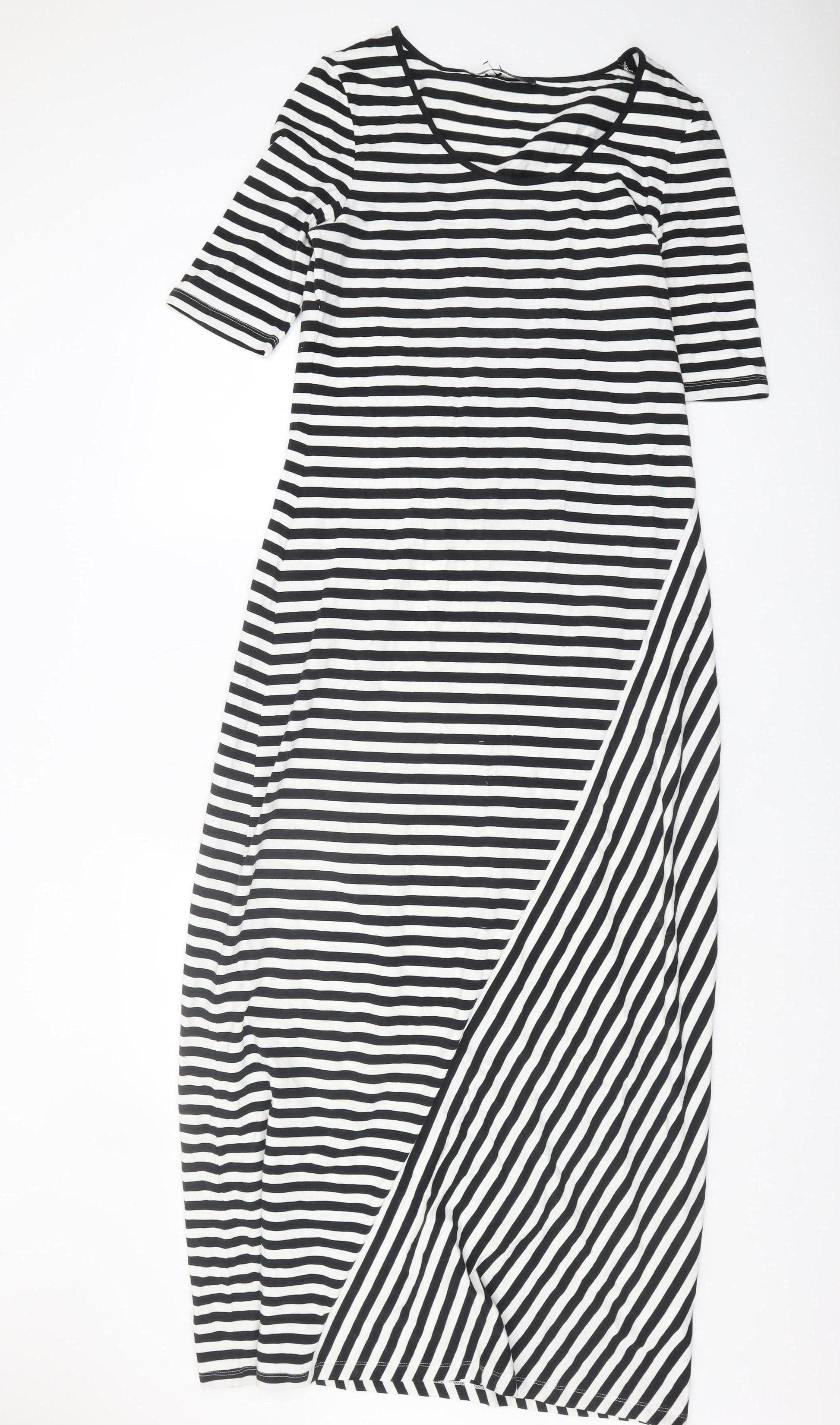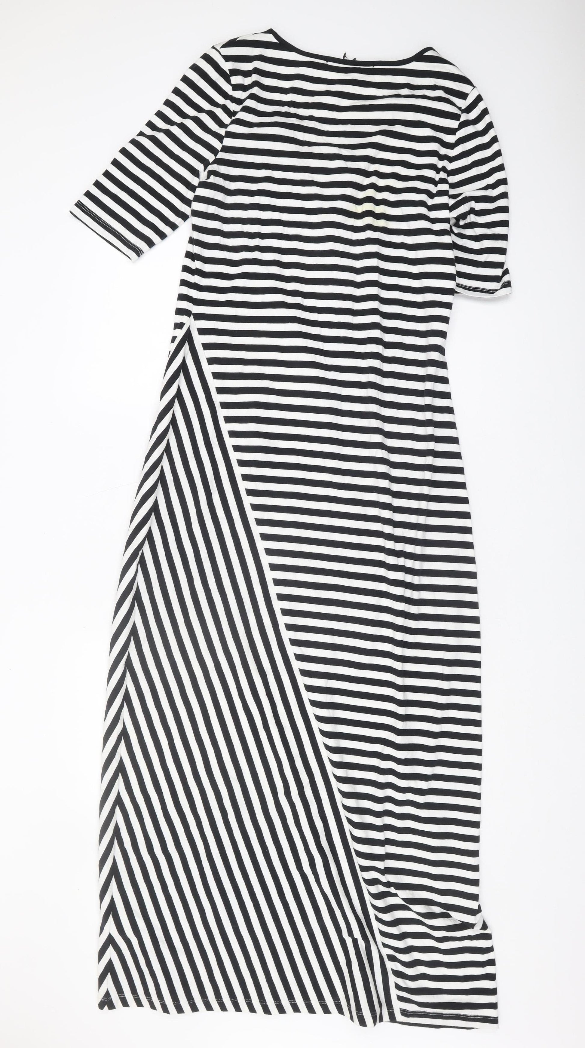 F&F Womens Black Striped Viscose Skater Dress Size 14 Round Neck Zip
