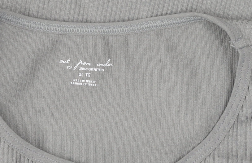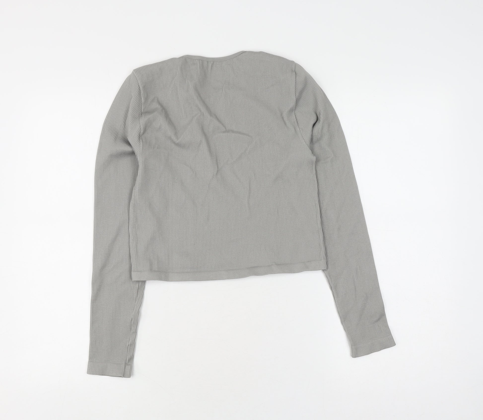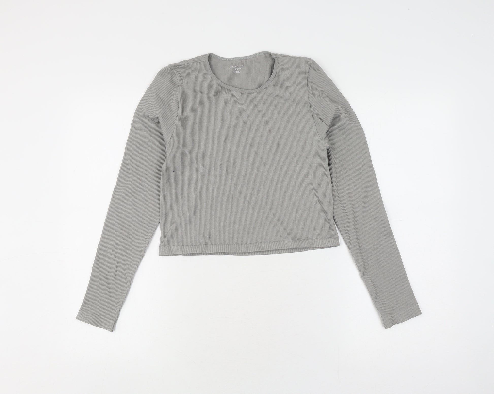 Elevate your casual wardrobe with this Out From Under Women's Grey Cropped Long Sleeve T-Shirt. Crafted in a soft and stretchy jersey fabric, this stylish top promises both comfort and trend-forward appeal. The soothing grey hue makes it versatile for pairing with a variety of outfits, from denim jeans to chic skirts, perfect for casual outings or relaxed weekend ensembles. Featuring a classic round neckline, this long sleeve t-shirt provides a flattering fit that's ideal for layering or wearing on its own. The slim fit adds a modern touch, ensuring you stay on-trend while still enjoying effortless wearability. Tailored for the fashion-conscious woman, the cropped style adds a hint of edge to your ensemble, making it a fantastic choice for transitioning between seasons like spring and autumn. Although previously owned, this piece remains in good condition, with only minor underarm stains and slight signs of wear that add character without detracting from its appeal. Offering machine-washable convenience, it's an easy-care piece that simplifies your laundry routine. Whether you're updating your everyday essentials or seeking a trendy layering piece, this Out From Under Women's Grey Cropped Long Sleeve T-Shirt is a versatile addition to any wardrobe.