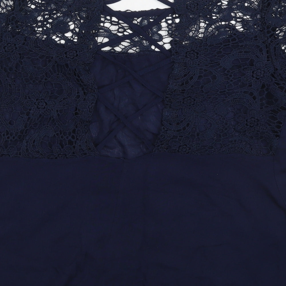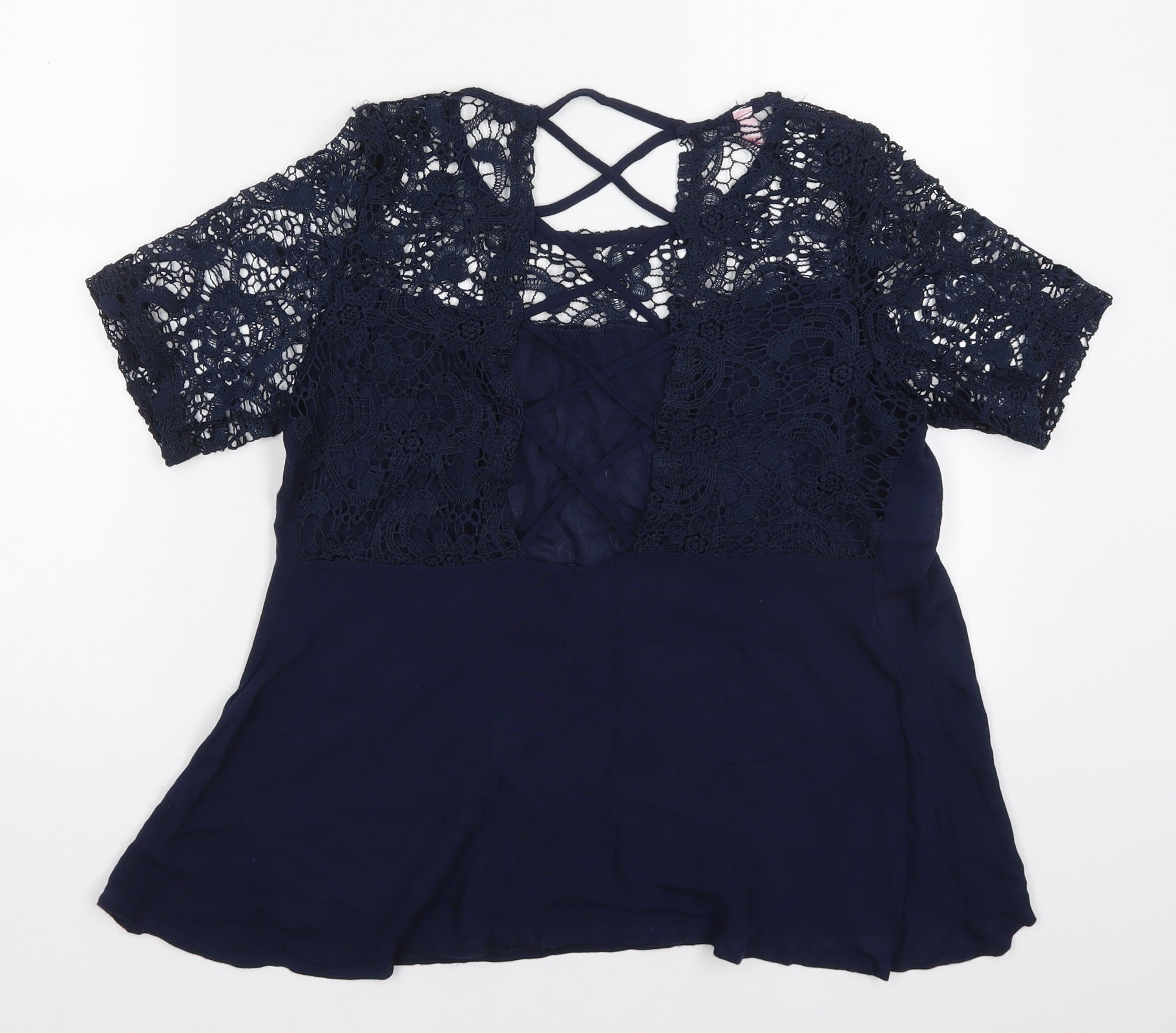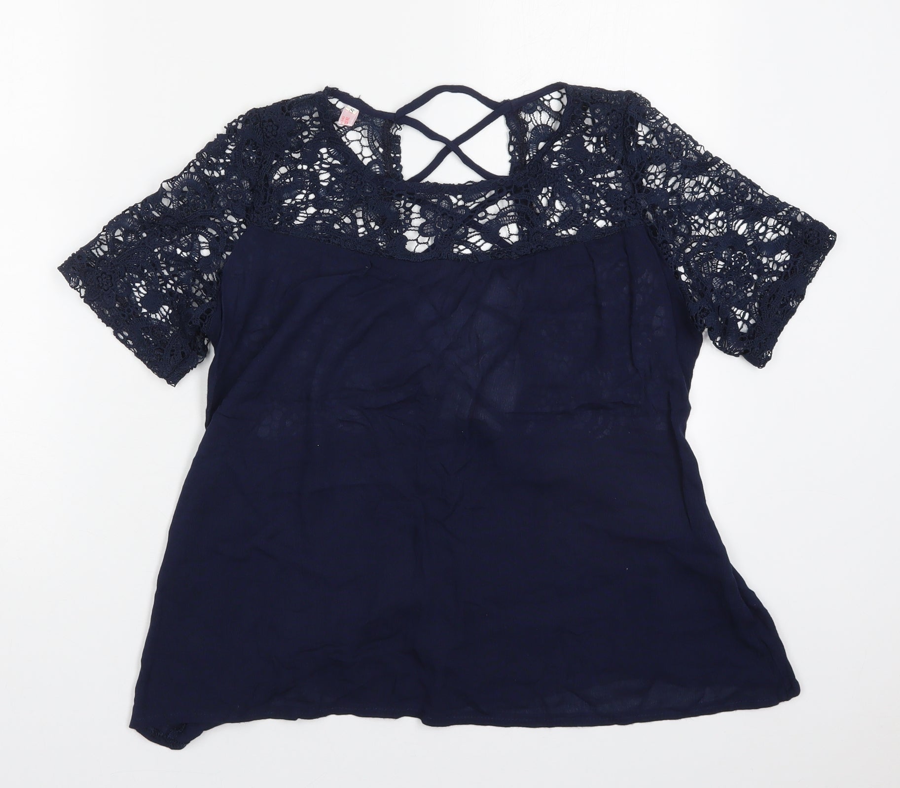 Womens Blue Viscose Basic T-Shirt Size S Round Neck