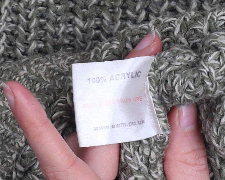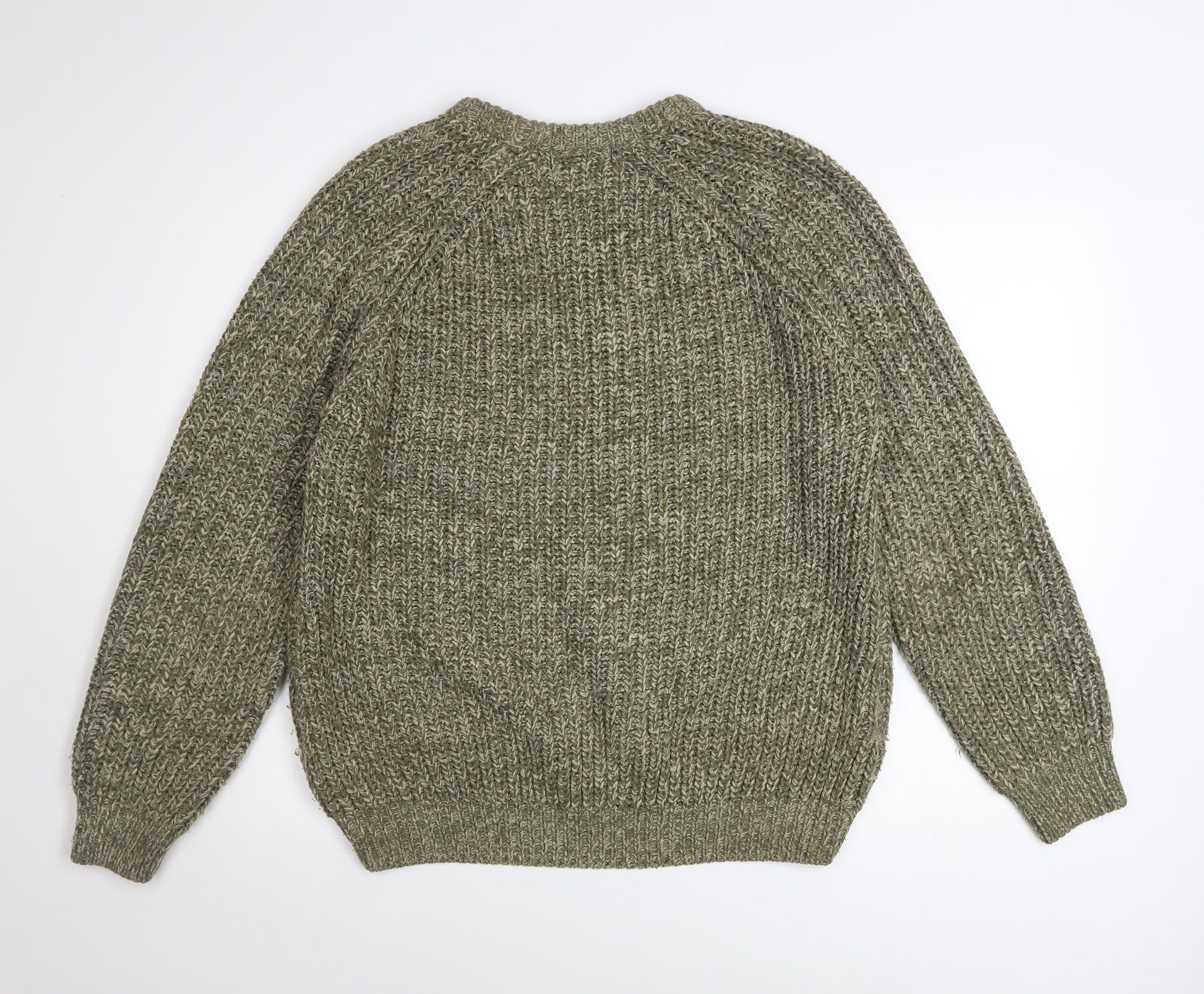 Men's Green Chunky-Knit V-Neck Pullover Jumper Size M